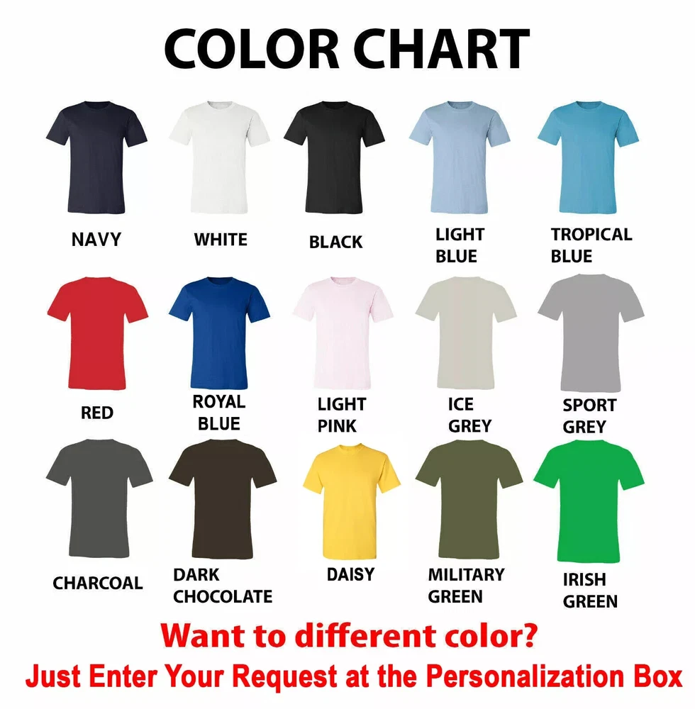 WELCOME TO OUR STORE --------- PRODUCT ---------- Cotton graphic T-shirt, custom t shirts, custom t shirt printing Lightweight, extremely comfortable and durable 100% Cotton High Quality Colors: Multicolore Size: S, M, L, XL, 2XL, 3XL, 4XL, 5XL We have a size chart in the picture, please refer to and choose the right product. ------SHIPPING-------- Every order that we receive is made at the time that we receive it which means it is custom made for you! Processing time: 2-3 business days Shipping time: 5-7 business days Thank you for choosing our products. Please feel free to message us if you have questions or concerns. ------CUSTOMER SATISFACTION-------- We try our very best to make sure every customer is completely satisfied. If there's a problem, message us! We're happy to help. If you like other colors and sizes please contact with us. We have color white, blue, green, ice grey, red, navy, charcoal, sport grey. Please explore our gallery dept t shirt to find the product you want. ------- Thank You!--------