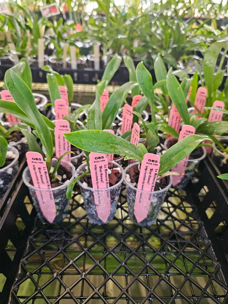 Lc Memorial Robert Strait ‘Blue Hawaii’ Cattleya walkeriana × Cattleya Wayndora Beautiful crisp white petals with dark blue petal flares. The lip is also a dark blue. Very sought after cattleya. You are bidding on a plant 'similiar' in size and quality to the one pictured. The bloom photos are similiar to what this plant will look like when it blooms. This plant is not in bud or sheath at this time. They are potted in plastic pots. They will be shipped 'In Pot'. All of our orchids are planted and growing in the best mix available. COMBINED SHIPPING POLICY!! We combine shipping for more than one item. To receive the combined shipping discount, you must use E-bay's CART. Add the items you want to purchase to the CART. Then E-bay will automatically give you the discount. I will not issue refunds for shipping just because you did not use the cart. Each plant is meticulously planted in plastic pots with the best mix available. Most have been potted within the last year and should not need repotting for at least 2 more years. We take great care to package your items so they will reach you in good condition. We will not be responsible if your package arrives damaged or frozen. Should this happen, please file a claim with the US Post Office. All plants shipped 'Priority' are automatically insured for up to $100. Should something should go wrong with this purchase, before placing negative feedback, please contact me and we will see what we can work out to benefit both parties. If all else fails, I do take "Returns" within 14 days after the auction ends at which time I will make a full refund for the amount of your purchase. Merchandise must be returned in the condition it was in when it arrived and at your expense. Mutilated plants do not qualify for refunds. BE AWARE that when I list a plant that has been recently repotted, it is in the process to growing new roots and the old ones may not be viable. This is a natural occurence when orchids are repotted. I send a flyer with all newly repotted plants with instructions on how to care for them.
