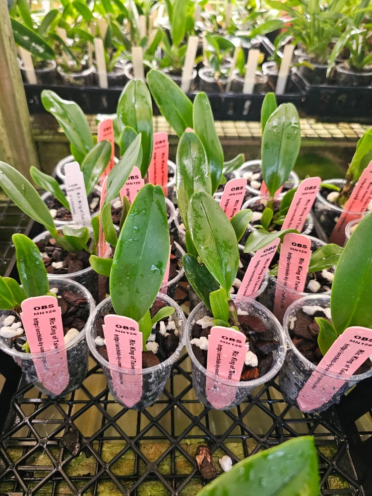 Rlc King of Taiwan (Blc Bryce Canyon x Rlc Purple Ruby) Standard cattleya with very larlge purple blooms held high of strong stems. This orchid is fragrant. You are bidding on a plant 'similiar' in size and quality to the one pictured. The bloom photos are similiar to what this plant will look like when it blooms. This plant is not in bud or sheath at this time. They are potted in plastic pots. They will be shipped 'In Pot'. All of our orchids are planted and growing in the best mix available. COMBINED SHIPPING POLICY!! We combine shipping for more than one item. To receive the combined shipping discount, you must use E-bay's CART. Add the items you want to purchase to the CART. Then E-bay will automatically give you the discount. I will not issue refunds for shipping just because you did not use the cart. Each plant is meticulously planted in plastic pots with the best mix available. Most have been potted within the last year and should not need repotting for at least 2 more years. We take great care to package your items so they will reach you in good condition. We will not be responsible if your package arrives damaged or frozen. Should this happen, please file a claim with the US Post Office. All plants shipped 'Priority' are automatically insured for up to $100. Should something should go wrong with this purchase, before placing negative feedback, please contact me and we will see what we can work out to benefit both parties. If all else fails, I do take "Returns" within 14 days after the auction ends at which time I will make a full refund for the amount of your purchase. Merchandise must be returned in the condition it was in when it arrived and at your expense. Mutilated plants do not qualify for refunds. BE AWARE that when I list a plant that has been recently repotted, it is in the process to growing new roots and the old ones may not be viable. This is a natural occurence when orchids are repotted. I send a flyer with all newly repotted plants with instructions on how to care for them.