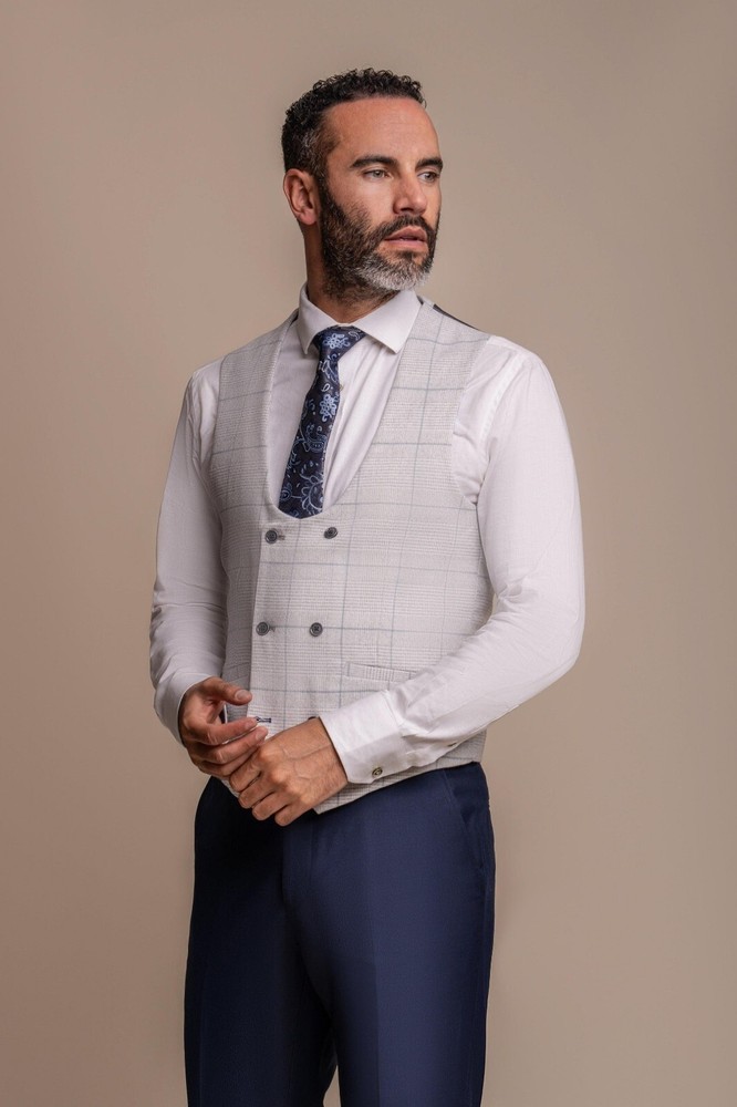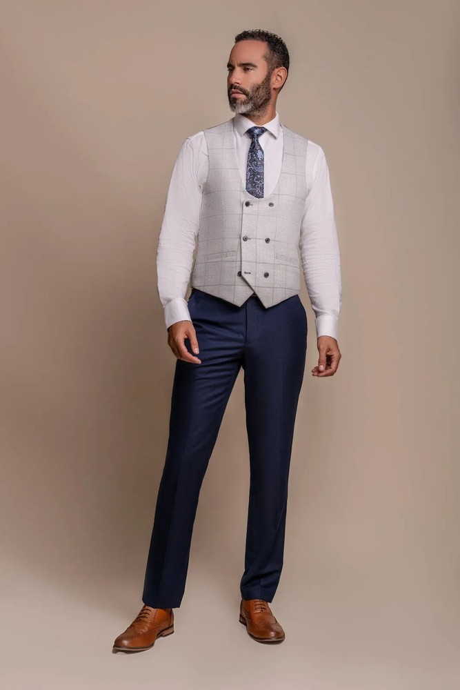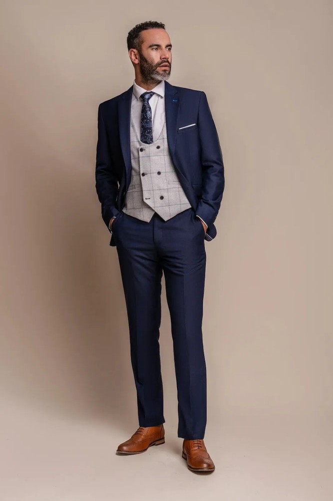 Cavani Men Navy Slim Fit Suit with Grey Retro Waistcoat Clearance Sale Was £225
