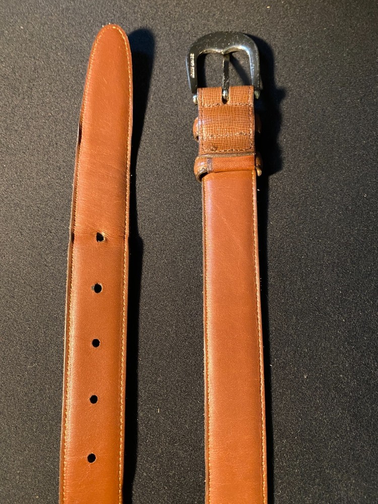 This handmade belt is a premium piece with a solid pattern and a vintage style, made in the USA from cowhide leather in a rich brown color. It features a classic nickel buckle and is designed for both work and dress occasions, with an adjustable fit for comfort. The Caviar Calf 41001 belt is a high-quality accessory that exudes a timeless appeal, perfect for adding a touch of sophistication to any outfit.