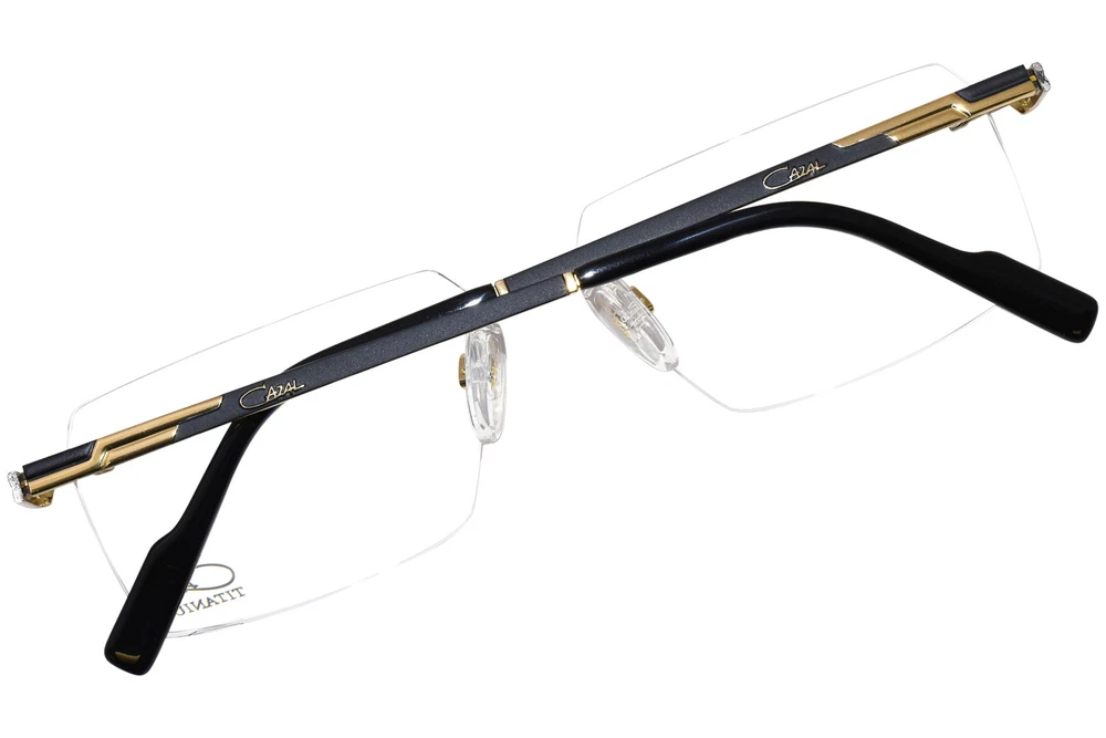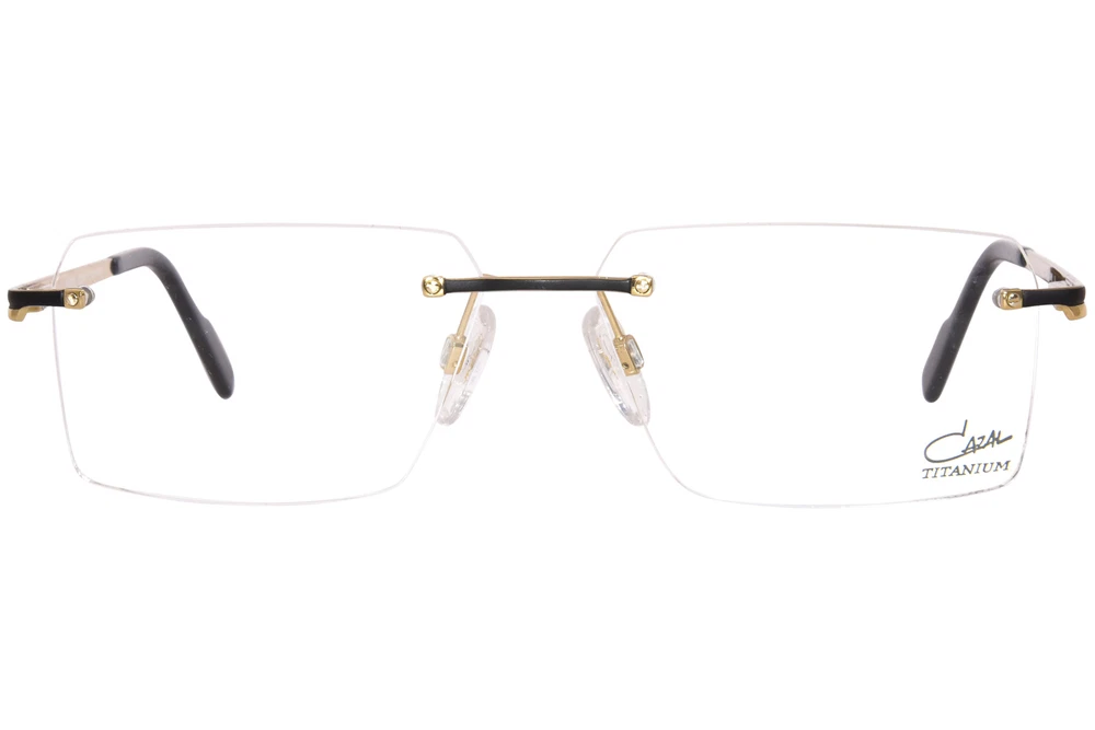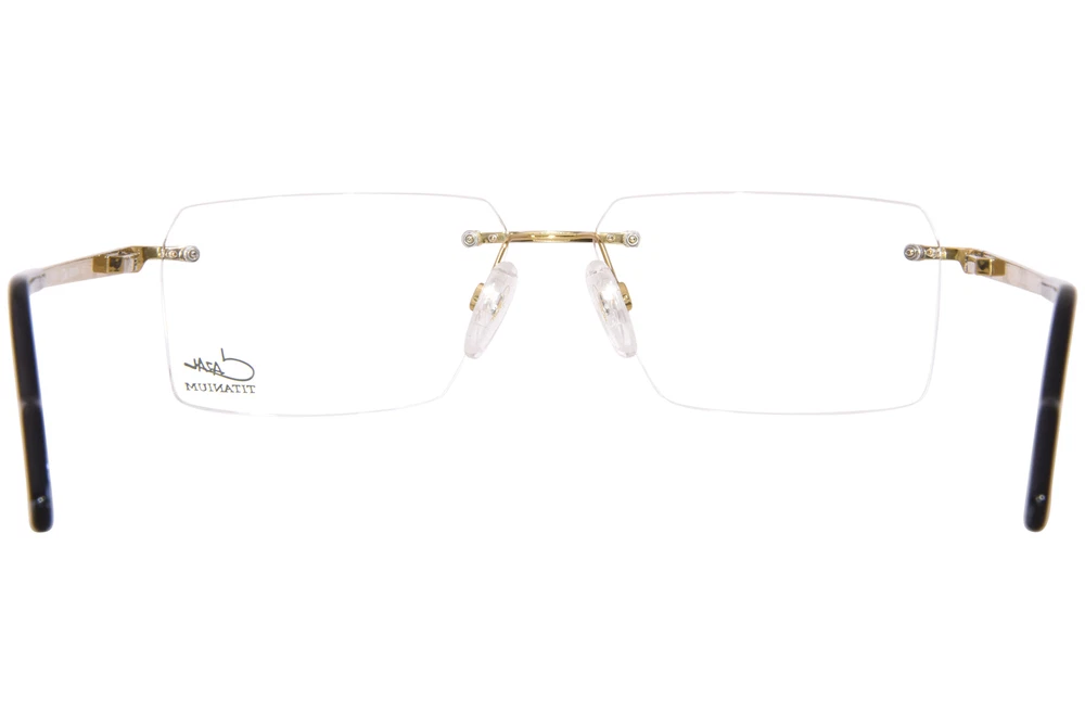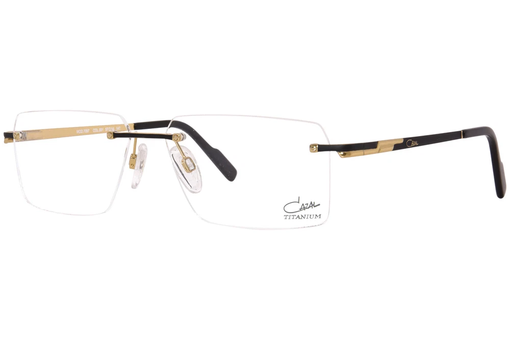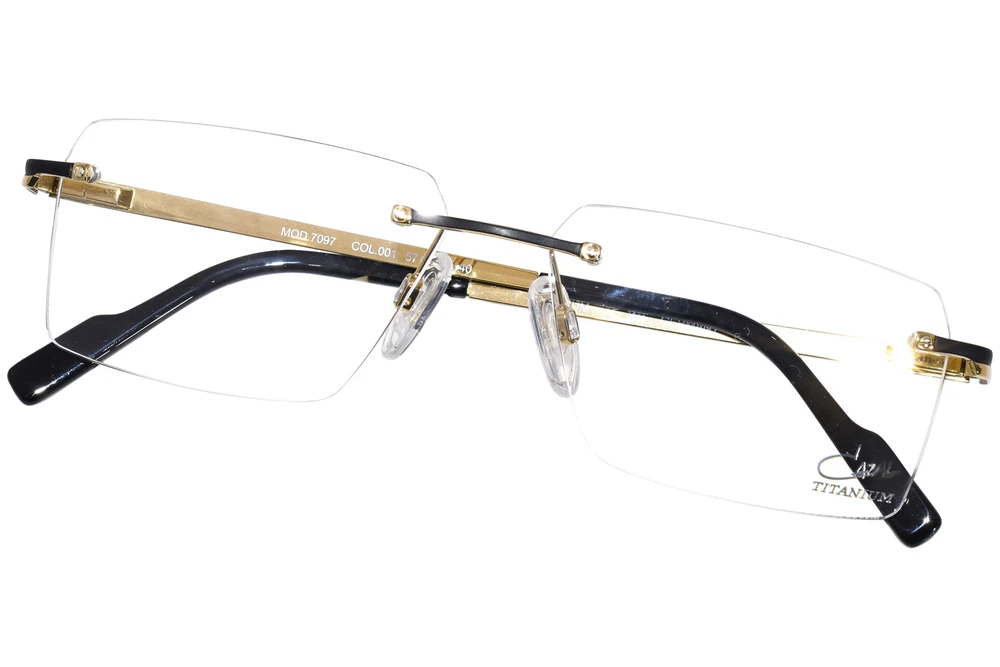 Cazal 7097 001 Titanium Eyeglasses Men's Black-Gold Rimless Rectangle Shape 57mm