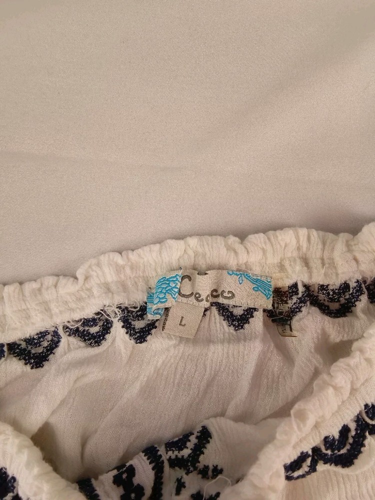 This Cecco white top in size L is a perfect addition to any woman's wardrobe. With its classic design and versatile color, it can be dressed up or down to suit any occasion. Made from high-quality materials, this blouse is both comfortable and durable. The brand name speaks for itself, ensuring that you are getting a top-notch product. Whether you are going to work or out for a night on the town, this top is sure to impress. Its regular size type and women's department make it a great choice for any female ensemble. Don't miss out on the opportunity to own this stylish and timeless piece.