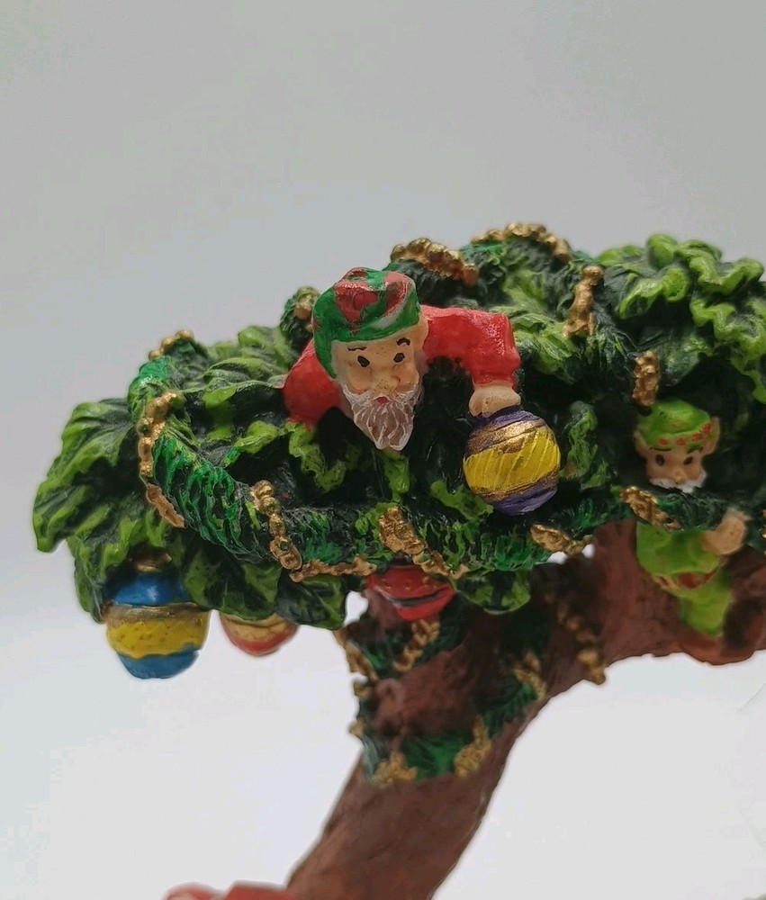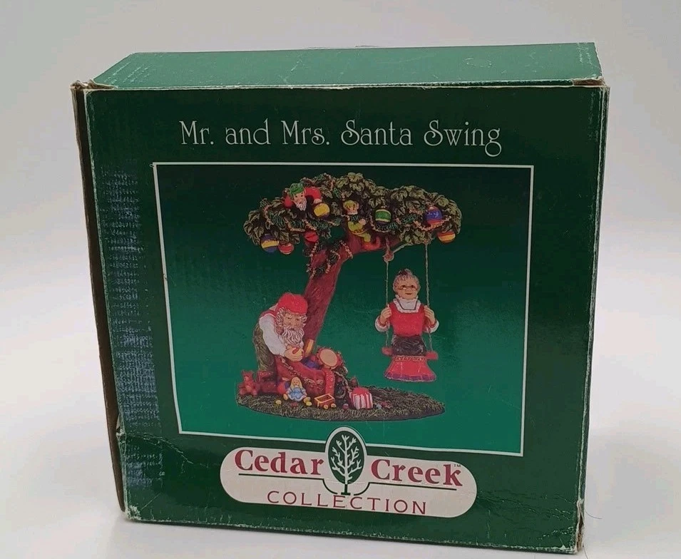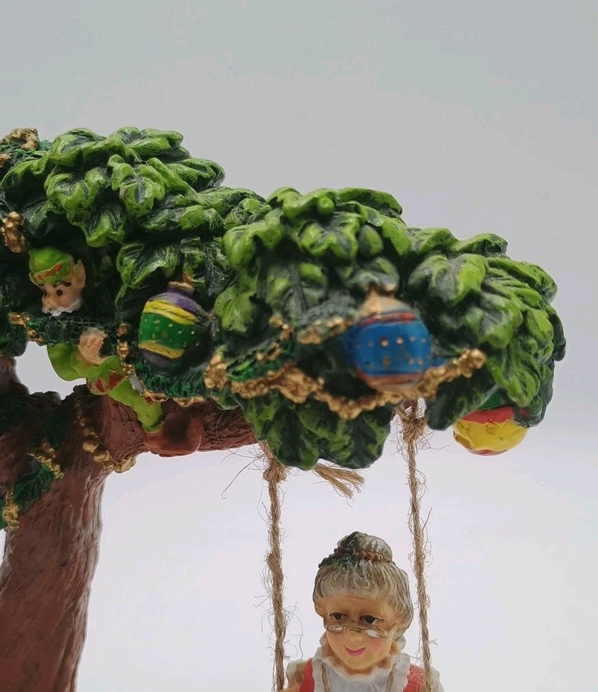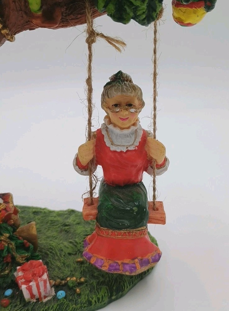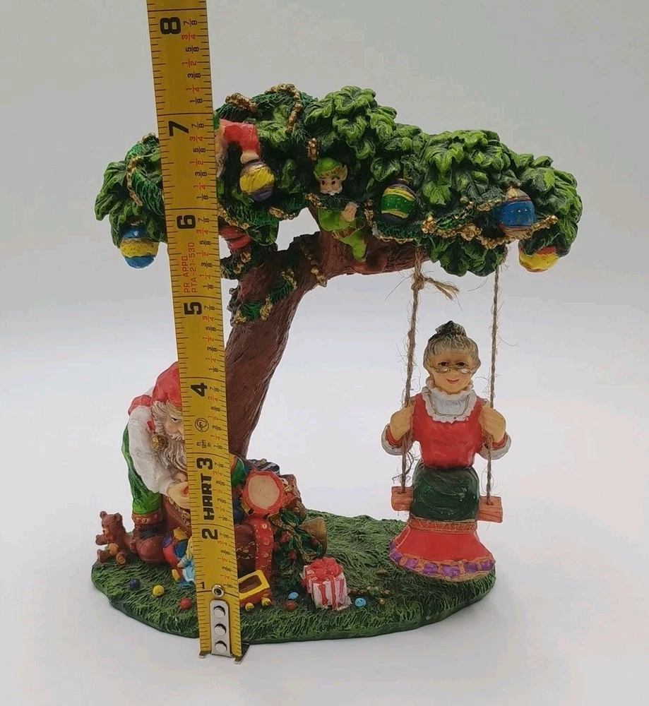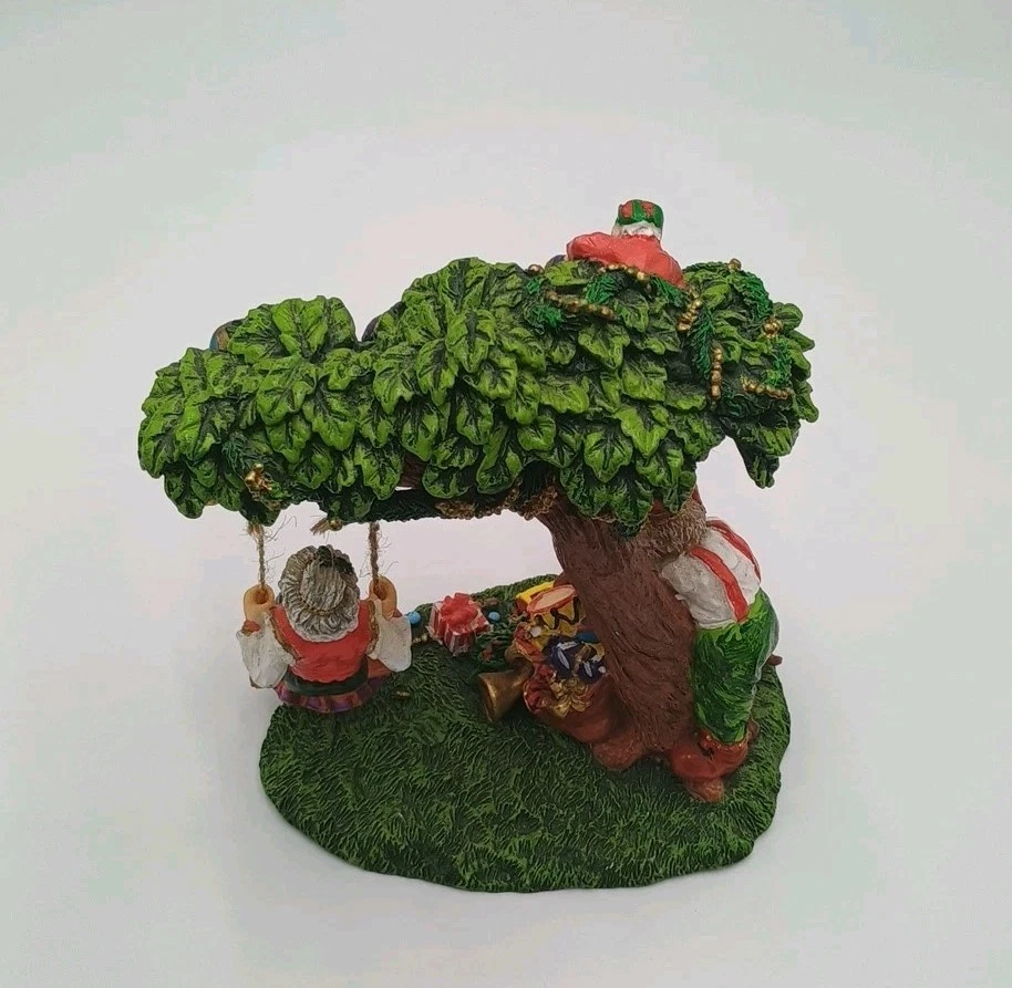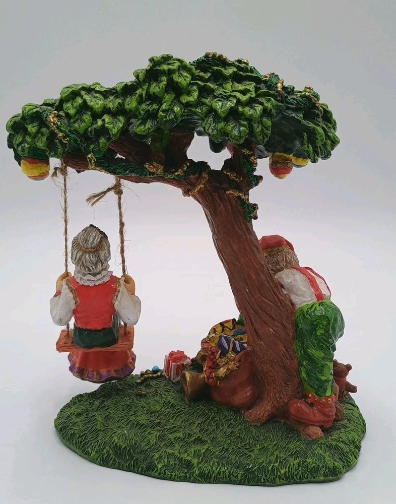 Cedar Creek Mr & Mrs Santa Claus Swing w/ Elves In Tree 7" Christmas Figurine. Condition is Used. Shipped with USPS Ground Advantage.