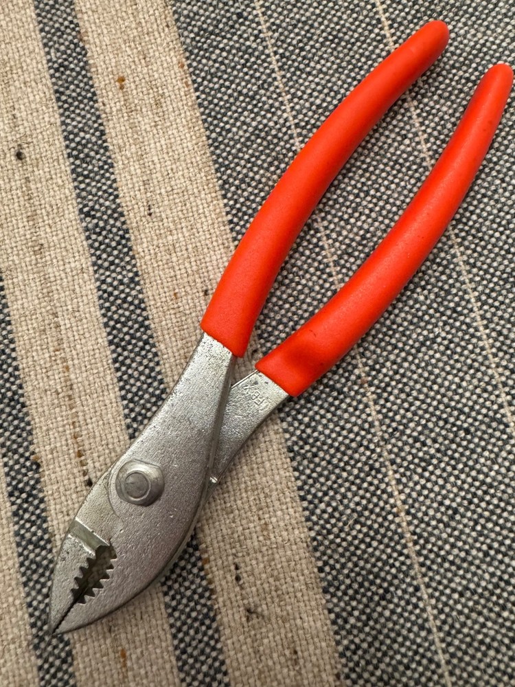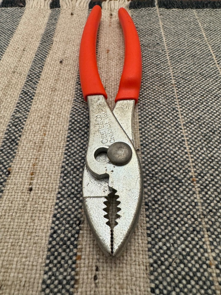 CeeTee Co. Crescent-style slip joint pliers, 6-1/2" long with red cushion grips, made in the USA. In great condition with only light signs of use. Joints move smoothly and the grips are clean and comfortable. A solid vintage pair of American-made pliers. Please see the photos for exact condition. You may recognize the style of my photos if you’ve bought vintage Craftsman or Stanley tools from me before. I try my best to give these old tools a new life so others can enjoy them for years to come. Every tool is cleaned thoroughly and restored to the best of my ability. If you ever receive something from me that isn’t what you were expecting, please let me know. My dad made his living using tools just like these, and I'm sure many of you have dads (or moms) that did the same. I spent many hours looking over his shoulder, and it made all the difference in my life. I’m happy to combine shipping for multiple items and refund the difference. If you have any questions at all, feel free to message me. Best always, Mike