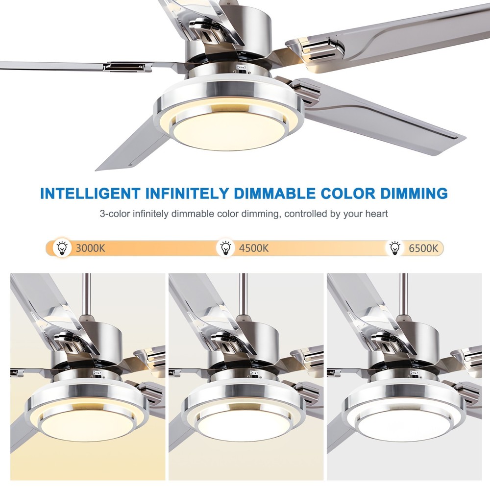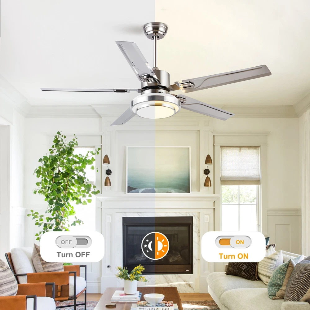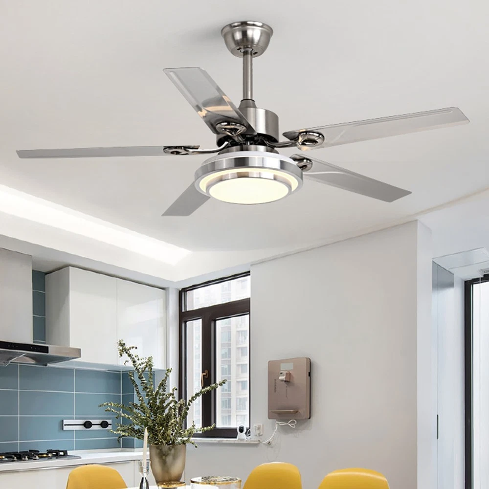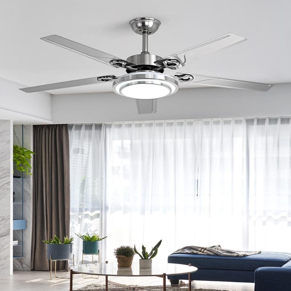 Ceiling Fan Light 42'' 5 Stainless Steel Blades LED Fan Lamp w/ Remote Control Details: Color: Silver Size: Diameter:42 inch/107cm,Height:17.7 inch/ 45cm Down rod:10cm/3.93inch,20cm/7.87inch Ligthing source: LED light panel board(Included) Voltage:110V Power: full open 36w Material: Stainless steel Switch: Remote Control Light color: White,neutral,warm light(Change by remote) Fan speed: L-M-L Is there a reverse function: Yes Applicable space: 9-15 sq.m Applicable: living room, bedroom, restaurant, etc. Packaging details 1 * fan light pack in foam carton box. Suggestion: Ceiling bearing ≥25KG Floor height ≥ 2.6cm Installation By A PROFESSIONAL ELECTRICIAN Assistant after sales: For any question or installation methords about the light fixture,pls contact us via ebay message firstly for help. Payment Delivery details Terms of sales About us Contact us Payment You could make payment via: Delivery details Packages will ship via by UPS or USPS within our handling time,once the package is shipped out ,normally shipping takes about 3-10 working days,but due to different cities and states,shipping time will be different. Terms of sales If you any problem about shipping information, or the item you got : Arrived damaged; Wrong item sent; Missing parts or pieces; Doesn't work or defective; Doesn't match description or photos. Pls click "Contact Seller" and send us message firstly. Then we could have a check and will take responsibility to resolve the problem with you in good communication. About us Our company specializing in selling all kinds of light fixtures,such as ceiling fans,chandeliers,crystal lights,retro lamps,pendant light,etc. If there's any light fixture you are interested,pls feel free to contact us for more details. Contact us Normally your message will be replied in 1 business day,If after 24 hours you do not receive our reply,please kindly re-send us the message,because sometimes ebay message system will have technical problem,so your message can't send to us successfully.