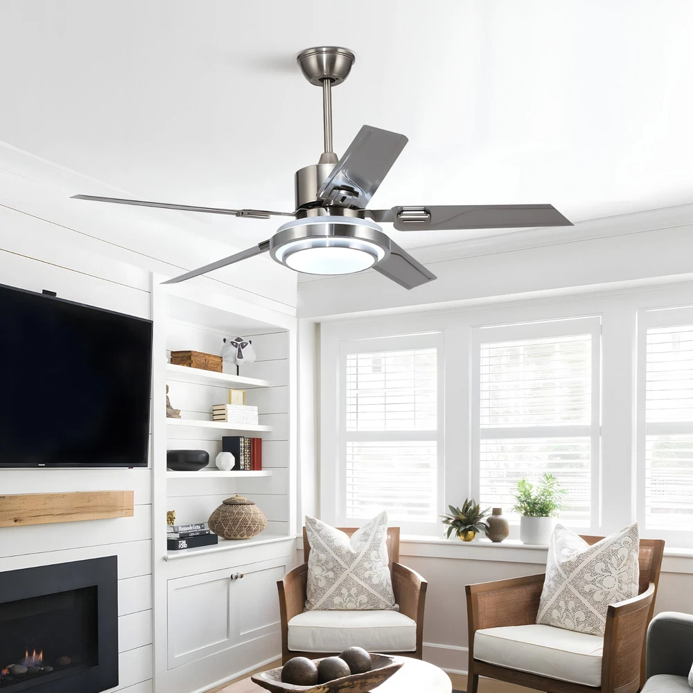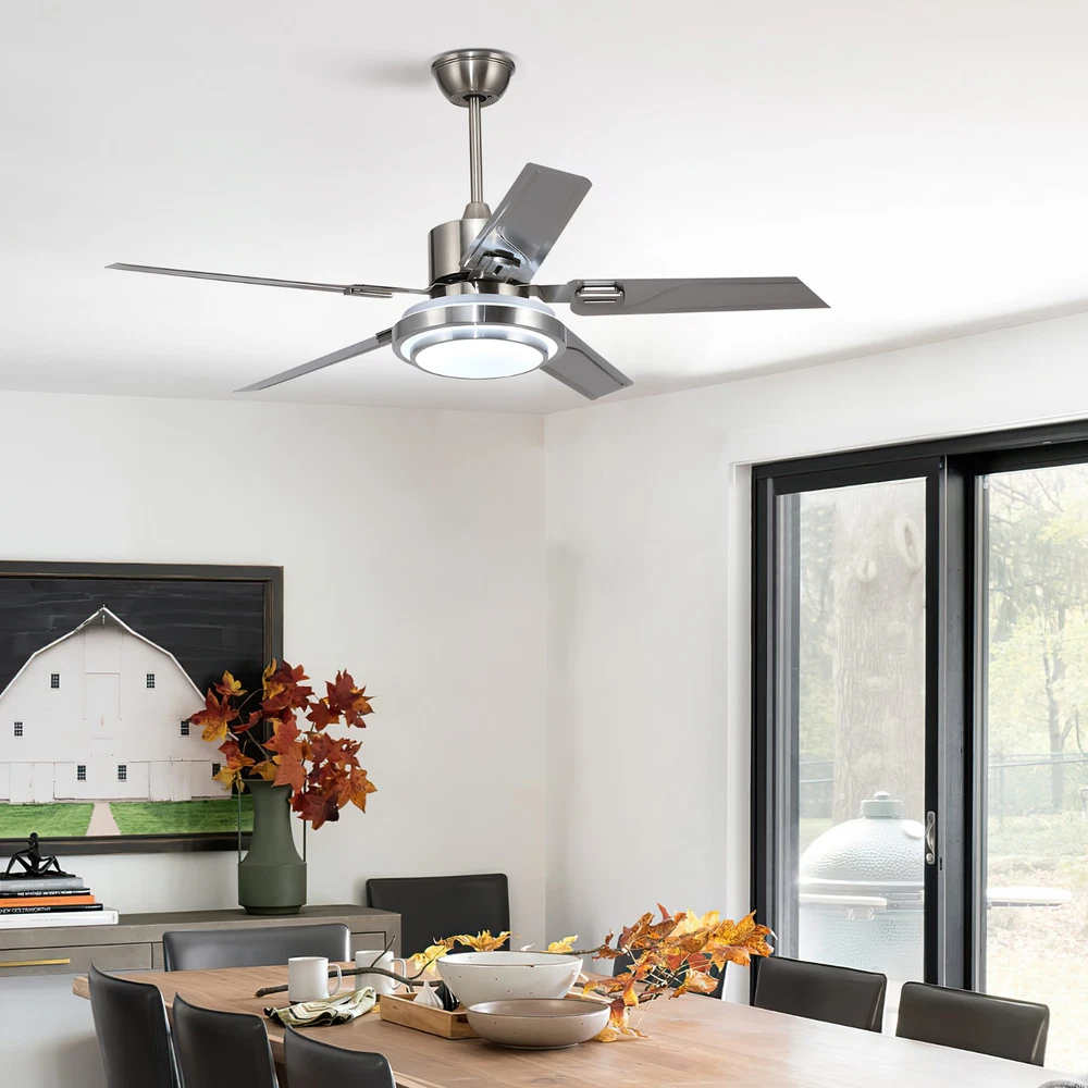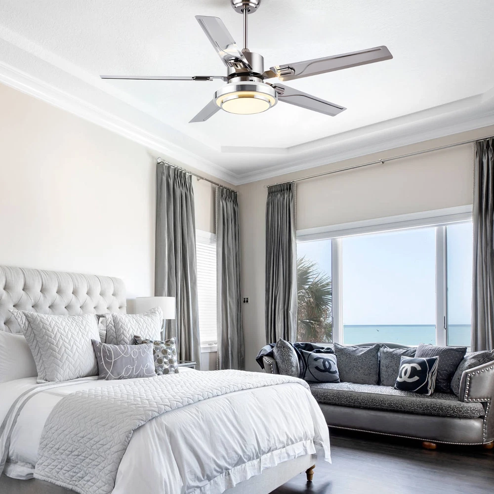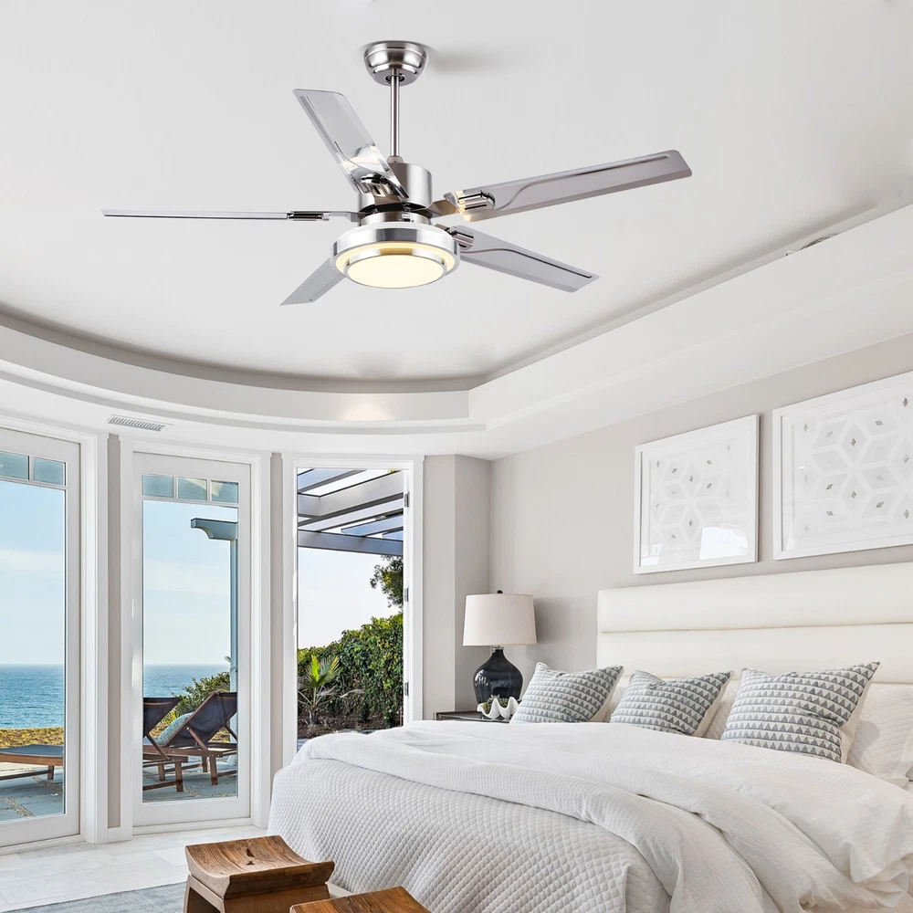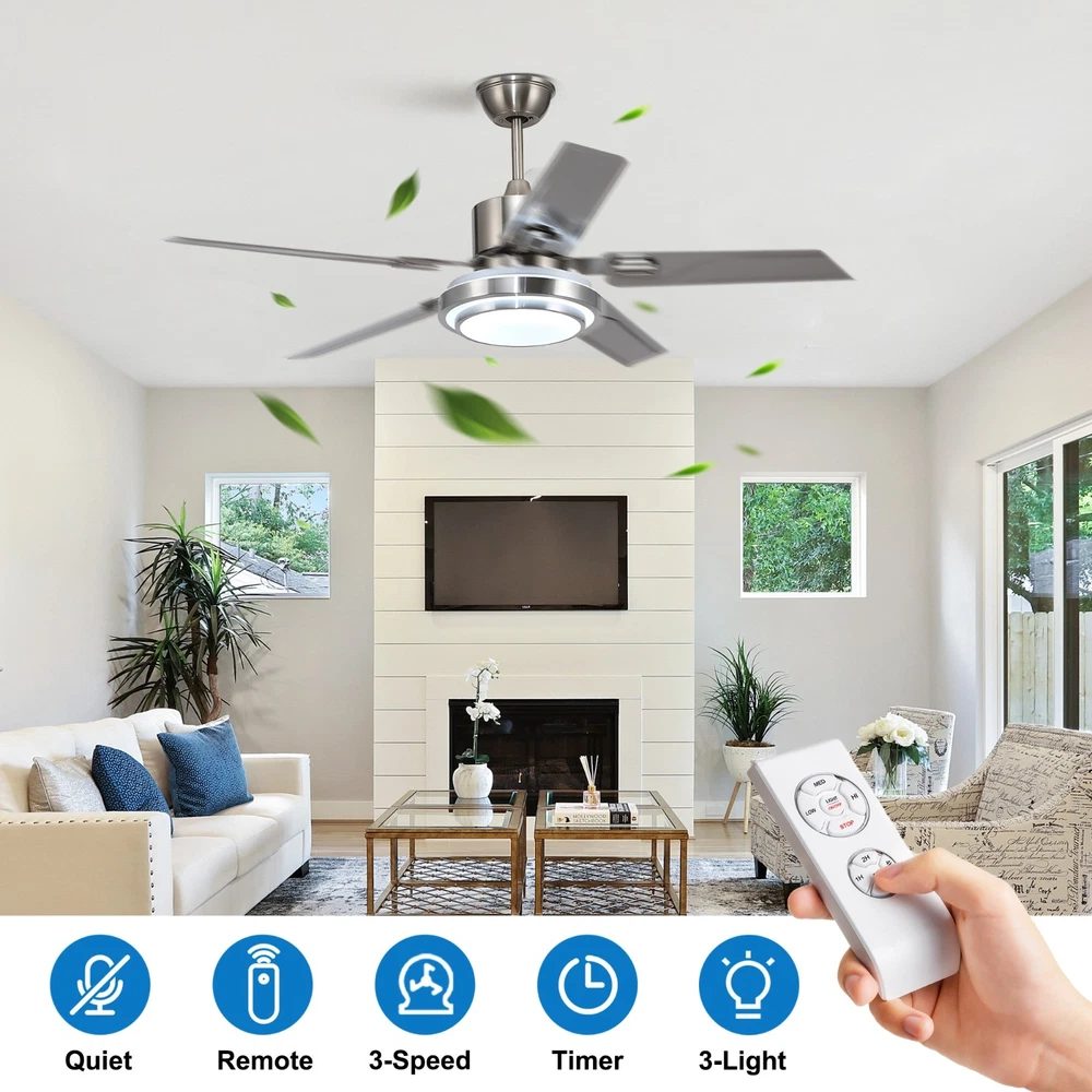 Ceiling Fan Light 42'' 5 Stainless Steel Blades LED Fan Lamp w/ Remote Control Details: Color: Silver Size: Diameter:42 inch/107cm,Height:17.7 inch/ 45cm Down rod:10cm/3.93inch,20cm/7.87inch Ligthing source: LED light panel board(Included) Voltage:110V Power: full open 36w Material: Stainless steel Switch: Remote Control Light color: White,neutral,warm light(Change by remote) Fan speed: L-M-L Is there a reverse function: Yes Applicable space: 9-15 sq.m Applicable: living room, bedroom, restaurant, etc. Packaging details 1 * fan light pack in foam carton box. Suggestion: Ceiling bearing ≥25KG Floor height ≥ 2.6cm Installation By A PROFESSIONAL ELECTRICIAN Assistant after sales: For any question or installation methords about the light fixture,pls contact us via ebay message firstly for help. Payment Delivery details Terms of sales About us Contact us Payment You could make payment via: Delivery details Packages will ship via by UPS or USPS within our handling time,once the package is shipped out ,normally shipping takes about 3-10 working days,but due to different cities and states,shipping time will be different. Terms of sales If you any problem about shipping information, or the item you got : Arrived damaged; Wrong item sent; Missing parts or pieces; Doesn't work or defective; Doesn't match description or photos. Pls click "Contact Seller" and send us message firstly. Then we could have a check and will take responsibility to resolve the problem with you in good communication. About us Our company specializing in selling all kinds of light fixtures,such as ceiling fans,chandeliers,crystal lights,retro lamps,pendant light,etc. If there's any light fixture you are interested,pls feel free to contact us for more details. Contact us Normally your message will be replied in 1 business day,If after 24 hours you do not receive our reply,please kindly re-send us the message,because sometimes ebay message system will have technical problem,so your message can't send to us successfully.
