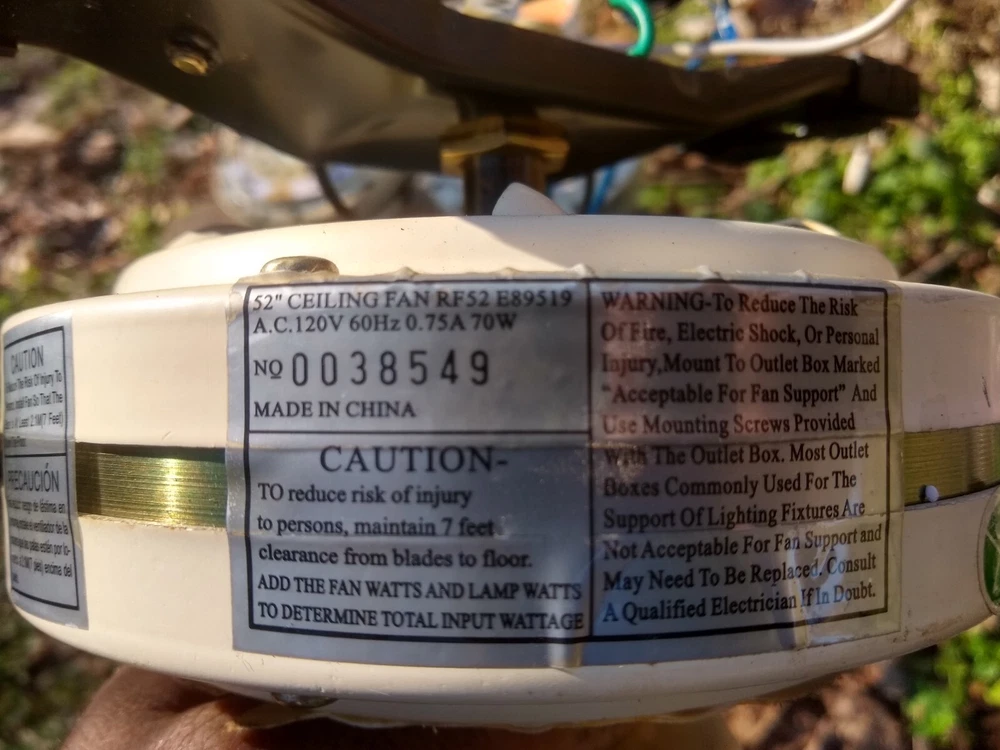 Ceiling Fan Motor Assembly Replacement RF52 E89519 120V 0038549 Untested As Is