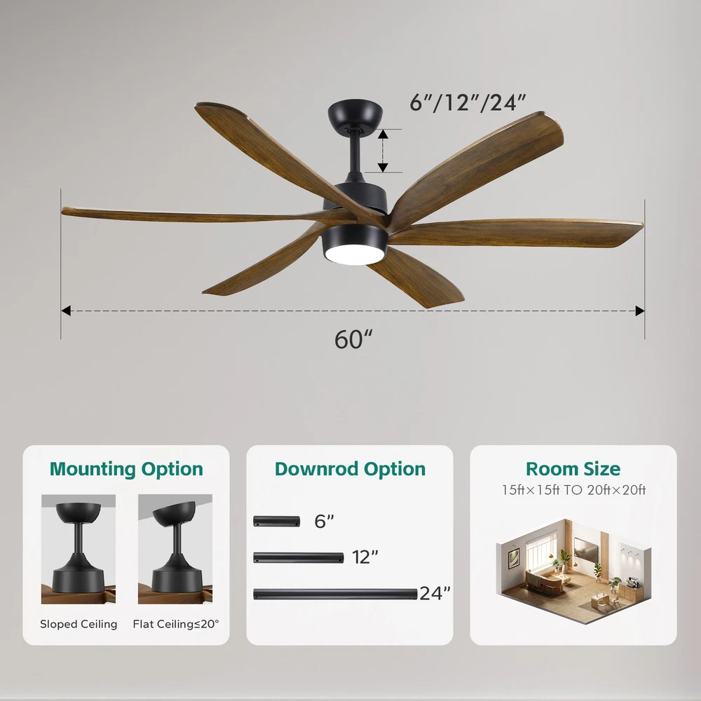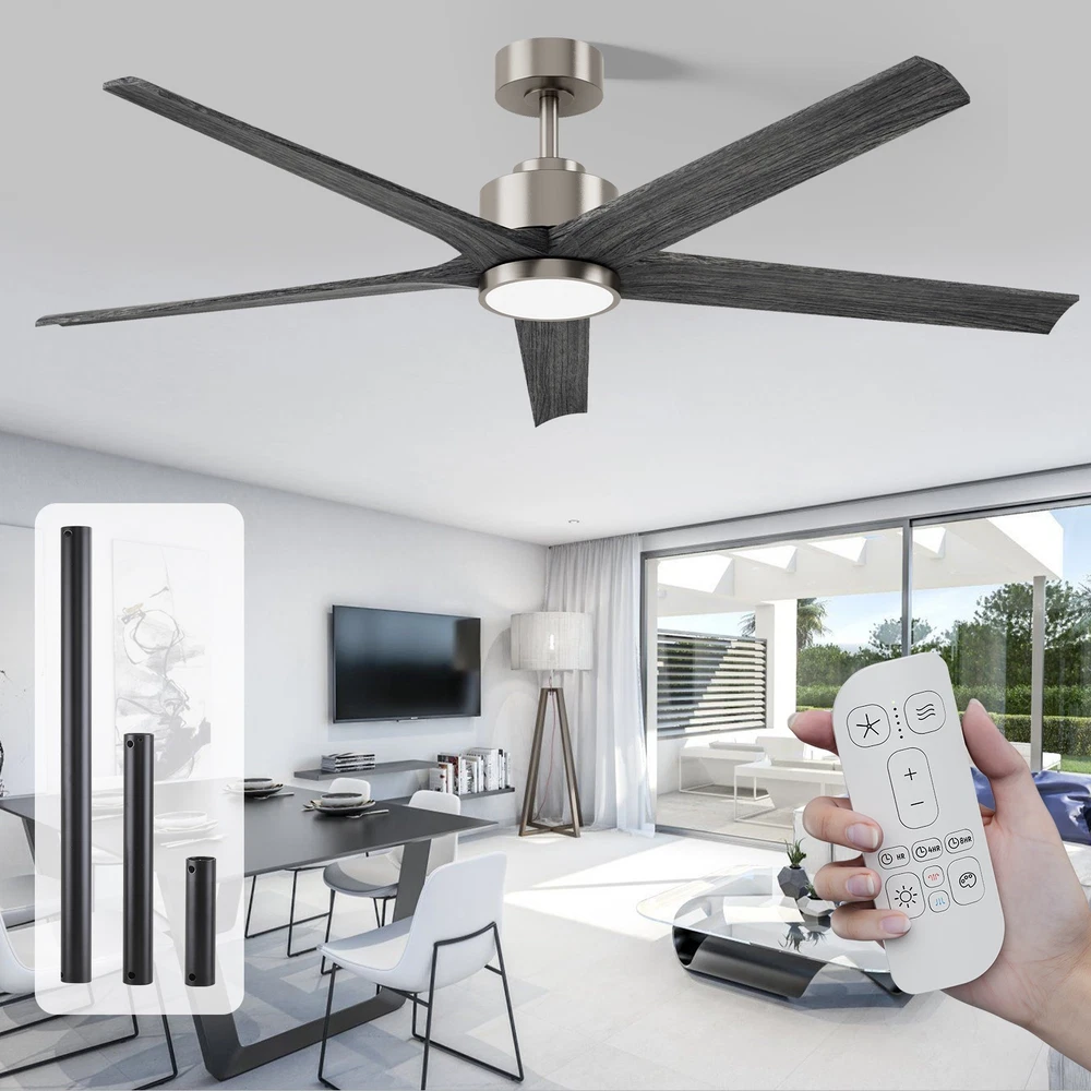 Voltage: 120 V Features: Reverse Airflow, With Light, With Remote Control Type: Ceiling Fan Power Consumption: 40watts Lighting Technology: LED Assembly Required: Yes Seller Notes: “90% New” Labels & Certifications: Energy Efficient Number of Speeds: 6 Required Tools: Screwdriver Installation Area: Indoor & Outdoor Mounting: Downrod Mount Style: Rustic/Modern Control Style: Remote Control Brand: Unbranded Era: 21st Century (2000-now) Power Source: Corded Light Direction: Downwards Sensor Type: Light Light Color: Clear White, Warm White, Natural White Country of Origin: China Room: Bedroom, Dining Room, Entryway, Garage, Greenhouse, Home Office/Study, Living Room, Porch, Workshop