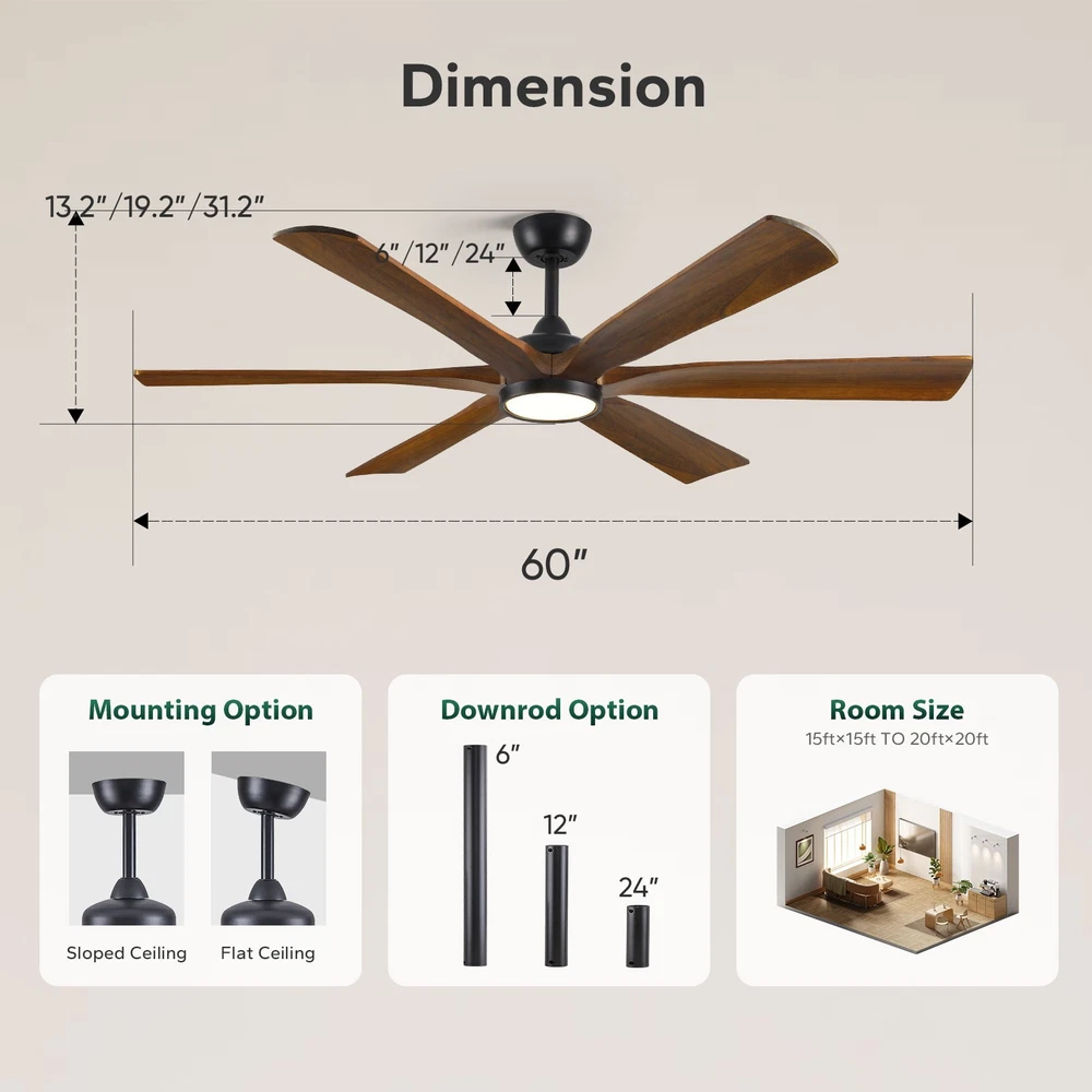 Ceiling Fan with Light & Remote Quiet Reversible DC Fan Dimmable Clearance Sale