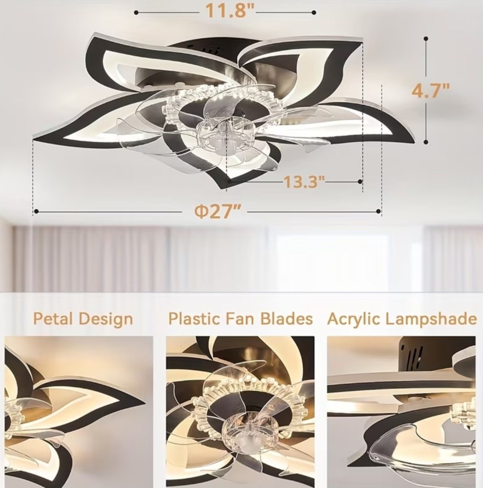 The Ceiling Fan with Lights Remote Control is a sleek and modern addition to any room, featuring a low profile flush mounting design in a stylish black finish. With 6 speeds and 3 color options, this fan provides customizable ventilation and lighting options for your convenience. The hard-wired power source and contemporary style make it perfect for use in bedrooms, living rooms, or kitchens. The remote control feature adds an extra layer of convenience for easy operation from anywhere in the room. Made of durable plastic and powder coated for a sleek finish, this ceiling fan is both functional and stylish.