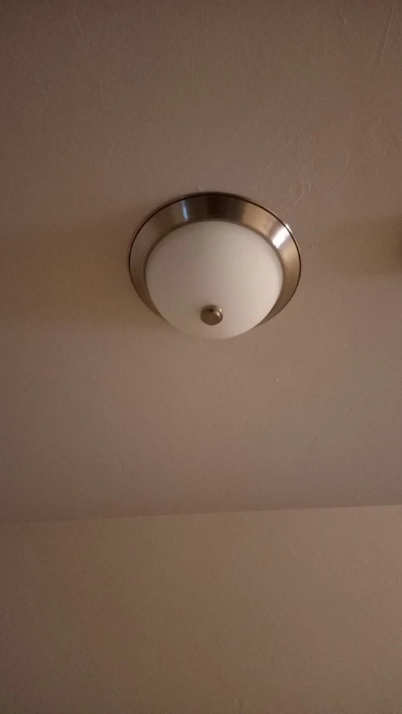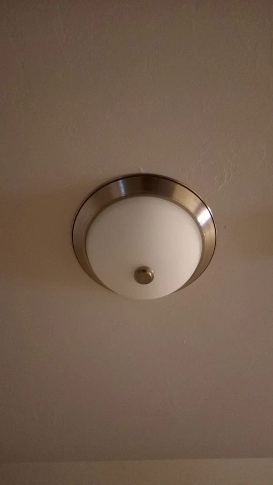 Four (4) Dimple flush mount ceiling lights. Brushed nickel and frosted glass. Removed from new house. Each one is being sold for $1.99 on AUCTION. You can BUY IT NOW 1 for $2.59. 2 ceiling lights will be $5.18. 3 ceiling lights will be $7.77. 4 ceiling lights will be $10.36. Can be shipped 2 in a box. Thanks for looking.