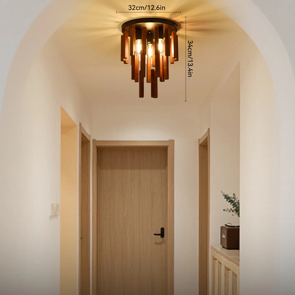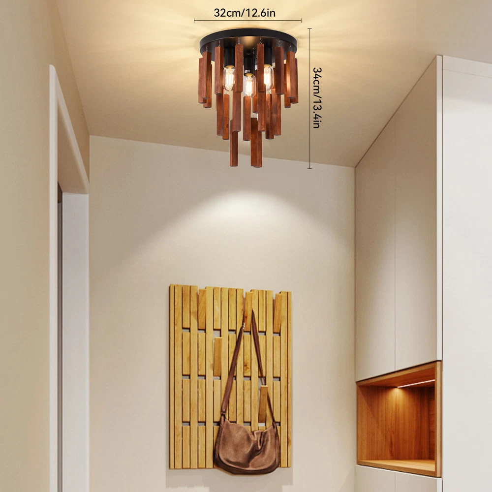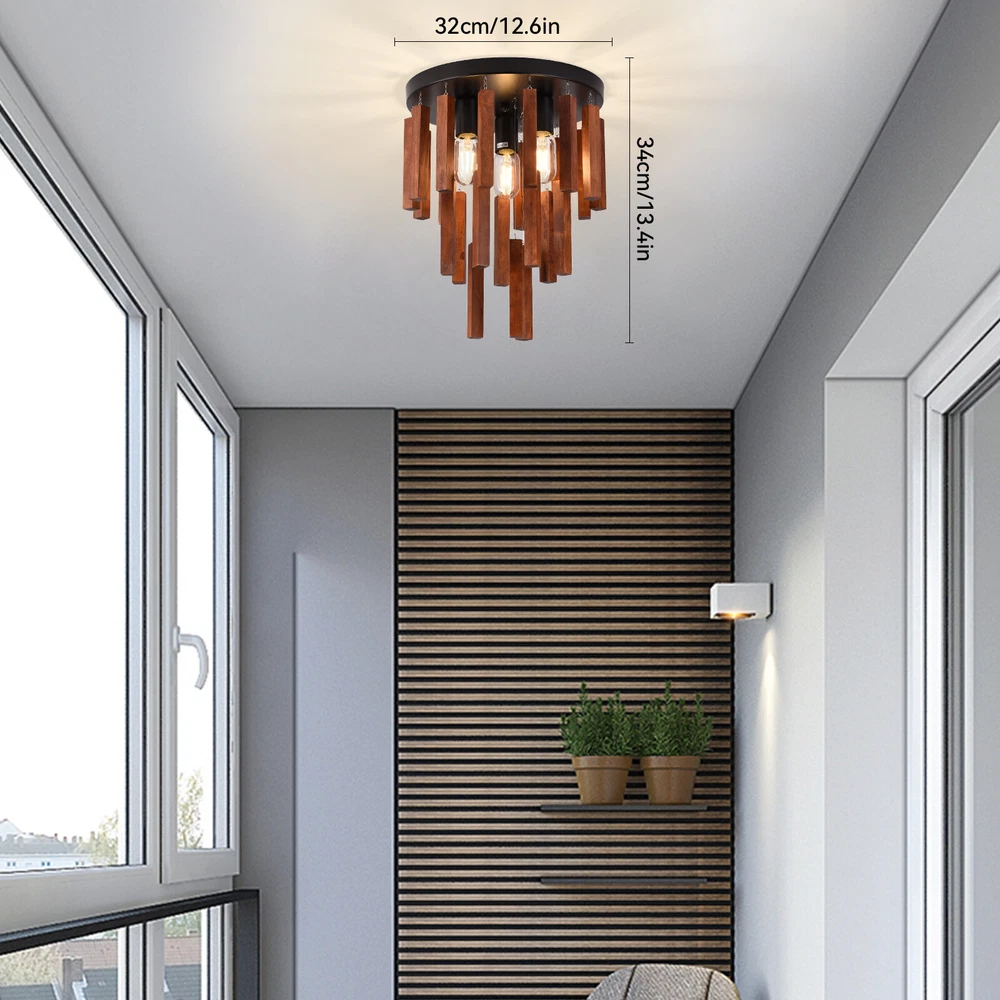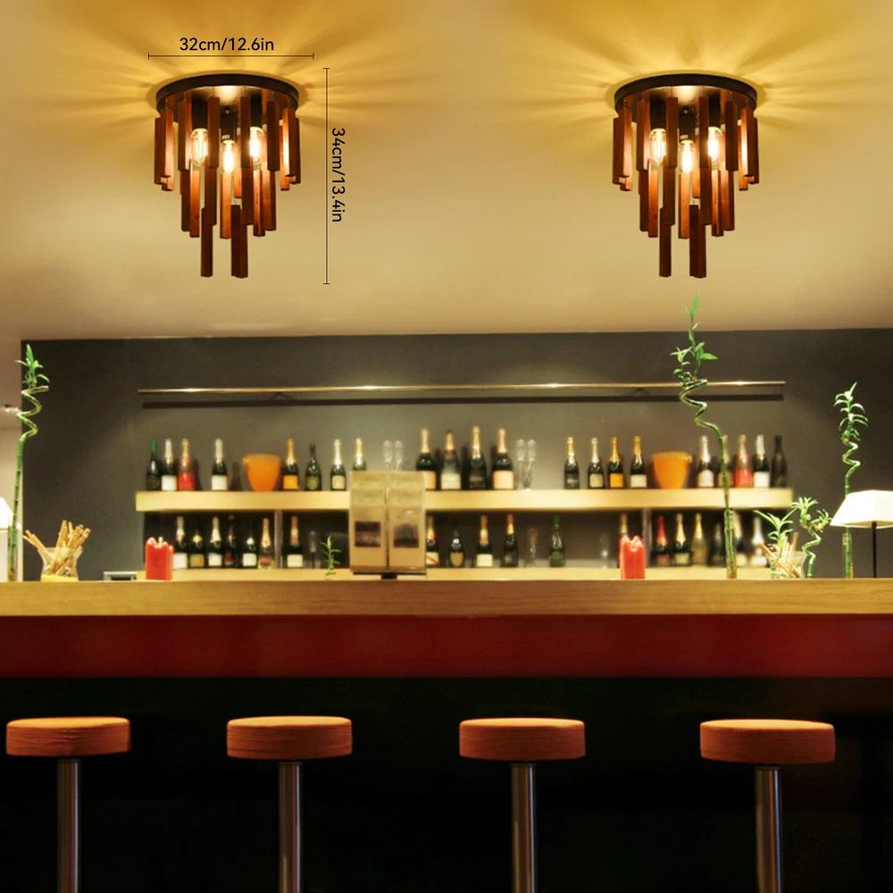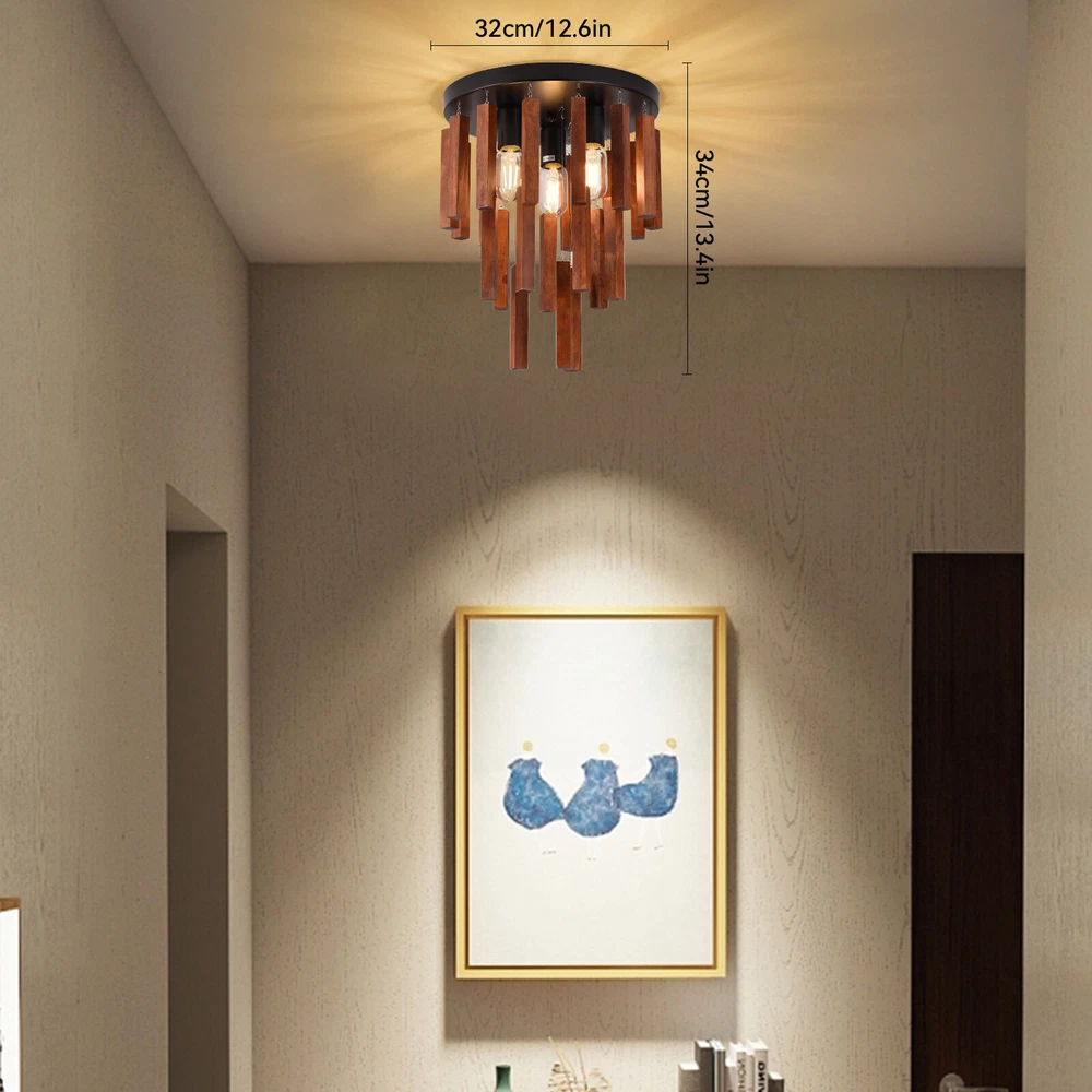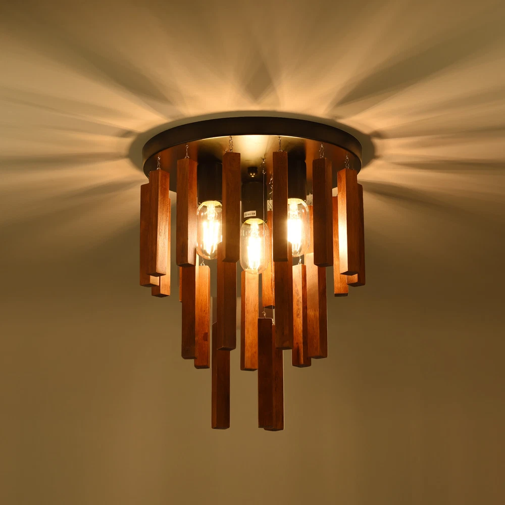 Ceiling Light Fixture Rustic Wooden Chandelier Retro Ceiling Semi Flush Mount Description This ceiling light uses solid wood and iron material, making it anti-rust , high-strength, and long-lasting. With wood forming the lampshade in a beautiful meteor form, it will cast a warm shimmering reflection on the ceiling when on, adding romance to your home. Key Features High-quality Material: This ceiling light adopts an iron chassis and solid wood lampshade, making it anti-rust , corrosion-resistant , and high-strength. Beautiful Lighting Effect: Applying evenly distributed rectangular wood, this ceiling light casts gorgeous rays on the ceiling to make a beautiful lighting effect and create a warm&romantic atmosphere in your living room. Retro Appearance: With a unique meteor form design and a classic round chassis, this ceiling light looks retro industrial, adding beauty and vintage elements to your room. Wide Compatibility: Three standard E26 bases make you choose different style bulbs such as LED, incandescent, and halogen to create different lighting effects. Dimmable: It is fully dimmable when used with dimmable bulbs and compatible dimming switches. Easy to Install : You can assemble the wood lampshade easily with the hooks. Then you just need to connect the wire reserved on the ceiling. And there is an English manual for your reference. Easy to Clean: Due to the painting surface treatment, you can easily wipe the dirt from it with a wet cloth. Ideal Gift: Thanks to its exquisite design, elegant appearance, and beautiful lighting effect, you can choose this ceiling light as a gift for housewarming to your friends. Protective Package: To prevent the product from being damaged and bumped during transportation, we packed it with pearl cotton to protect your products to the maximum extent possible. Details Hooks&Piercings: The piercings on the chassis&wood lampshade and hooks allow for convenient assembly. Open Bottom: With the open design, you just screw the E26 bulbs you want into the lamp holder. Stable Chassis: The round iron chassis with a nut in the middle ensures stable support for the light body and present classic beauty. Stainless Steel Wire: The solid wood is hung by stainless steel wires, making it sturdy. Application It is ideal for kitchens, hallways, living rooms, bedrooms, balconies, bars, aisles, foyers, hotels, restaurants, corridors, cafes, dining rooms, children's rooms, libraries, and other indoors. And its applicable area is 53-107.6ft². Specifications Model: 8923 Color: Black Material: Solid Wood, Metal Processes: Painting, Grinding Style: Retro Shape: Round Mounting Type: Ceiling Mount Indoor/Outdoor Usage: Indoor Specific Uses: Home Special Feature: Dimmable (Depending on the Bulbs you Choose) Light Fixture Form: Close to Ceiling Light Direction: Downlight Light Source: 3* E26 Bulbs (Not Included) Bulbs Type: LED, Incandescent, Halogen, Etc. Voltage: 110V Max. Single Bulb Power: 60W Applicable Area: 5-10m²/53-107.6ft² Chassis Thickness: 2.5cm/0.98inch Ceiling Light Height: 34cm/13.38inch Ceiling Light Diameter: 32cm/12.59inch Package Included 1* Ceiling Light 1* English Manual Notes Please check the product size before ordering to make sure it fits your room. You need 3 E26 bulbs with a single bulb less than 60W (not included). Please make sure the power is cut off before installation. To ensure your safety, we recommend that two people install this ceiling light together. Please install it by someone with an electrical license if necessary. Please use it in a dry environment. It is not suitable for outdoors and bathrooms because the wood will get wet. Please read the English manual carefully before installation. Please allow the slight color difference caused by the shooting light and 1-3cm error due to manual measurement, and make sure you do not mind before you order. Payment Delivery details Terms of sales About us Contact us Payment We accept ebay payment 。 Fees such as import duties, taxes are not included in the item price or shipping costs. These charges are the buyer's responsibility. Delivery details Shipping: 2-9 working days to: USA Terms of sales We maintain high standards of excellence and strive for hundred percent customer satisfaction. Feedback is very important to us. We hope that you contact us immediately before you give neutral or negative feedback, so that we can address your concerns. It is impossible to address issues if we do not know about them! About us Your satis faction is our ultimate goal. We work hard to earn your trust and future business. Our certified technicians have tested each item before shipping. The unit comes with 1 year limited warranty on all manufacturing defects. a) If you receive a defective item, you may return it or ask for a discount. Please contact us within 14 days after you receive the package. b) What you returned must be intact and in its original packaging as re? u. Customer is responsible for shipping costs of the returned item. c) We will cover the cost of shipping back t with the shipping rate indicated in the registration page. We will send you a new unit or refund the full payment you paid. Thank you. Contact us Business Hour Business Hour: Monday To Friday: 8:30 AM to 5:00 PM (Beijing China time) Due to time zones, our reply to your questions may not be immediately. But within above working time, we will reply your email within 24 hours. If it's non-workdays, please kindly be patient and wait till Monday. Please contact us with ebay message. Please feel free to contact us if you have any questions. Monday To Friday: 8:30 AM to 5:00 PM (Beijing China time) Due to time zones, our reply to your questions may not be immediately. But within above working time, we will reply your email within 24 hours. If it's non-workdays, please kindly be patient and wait till Monday. Please contact us with ebay message. Please feel free to contact us if you have any questions.