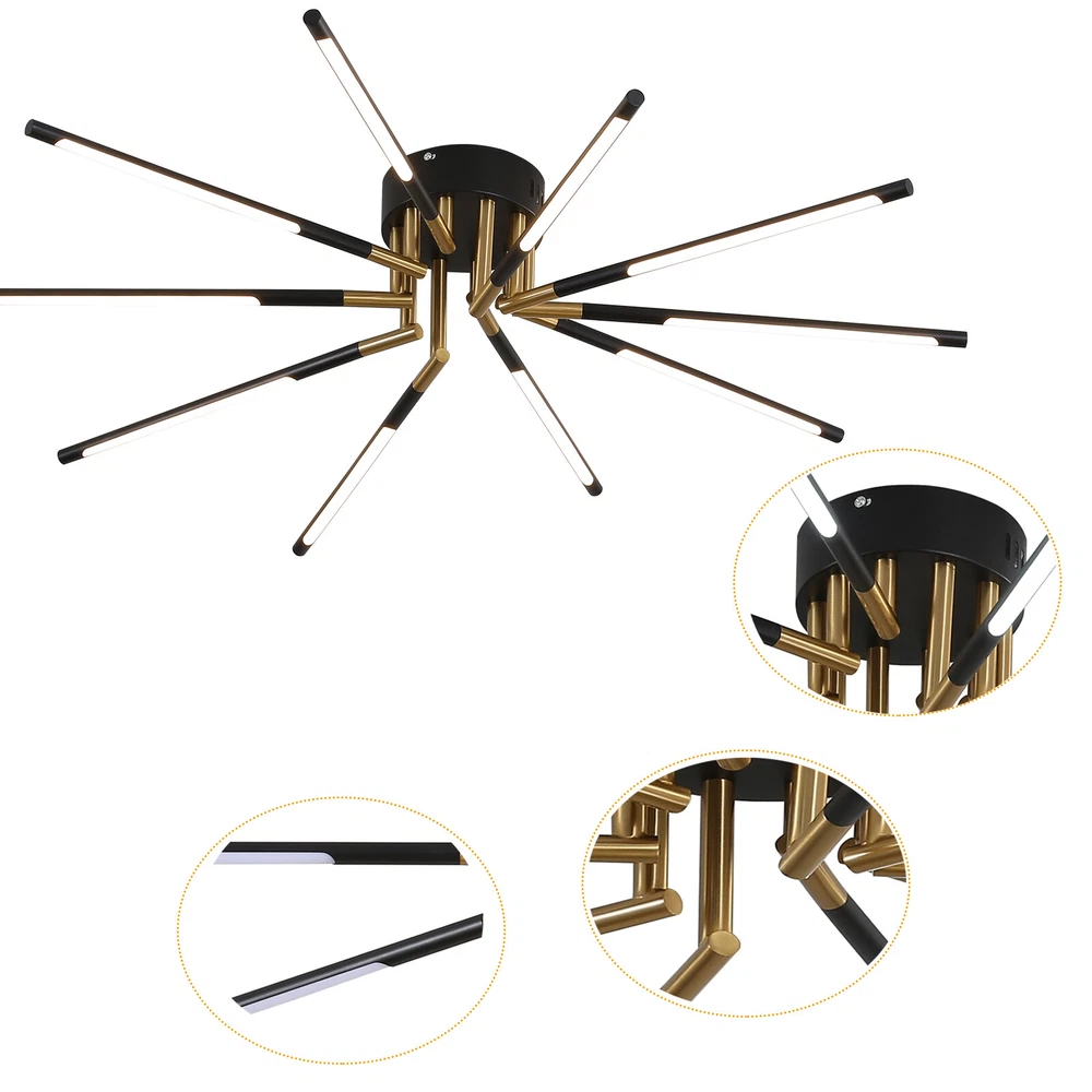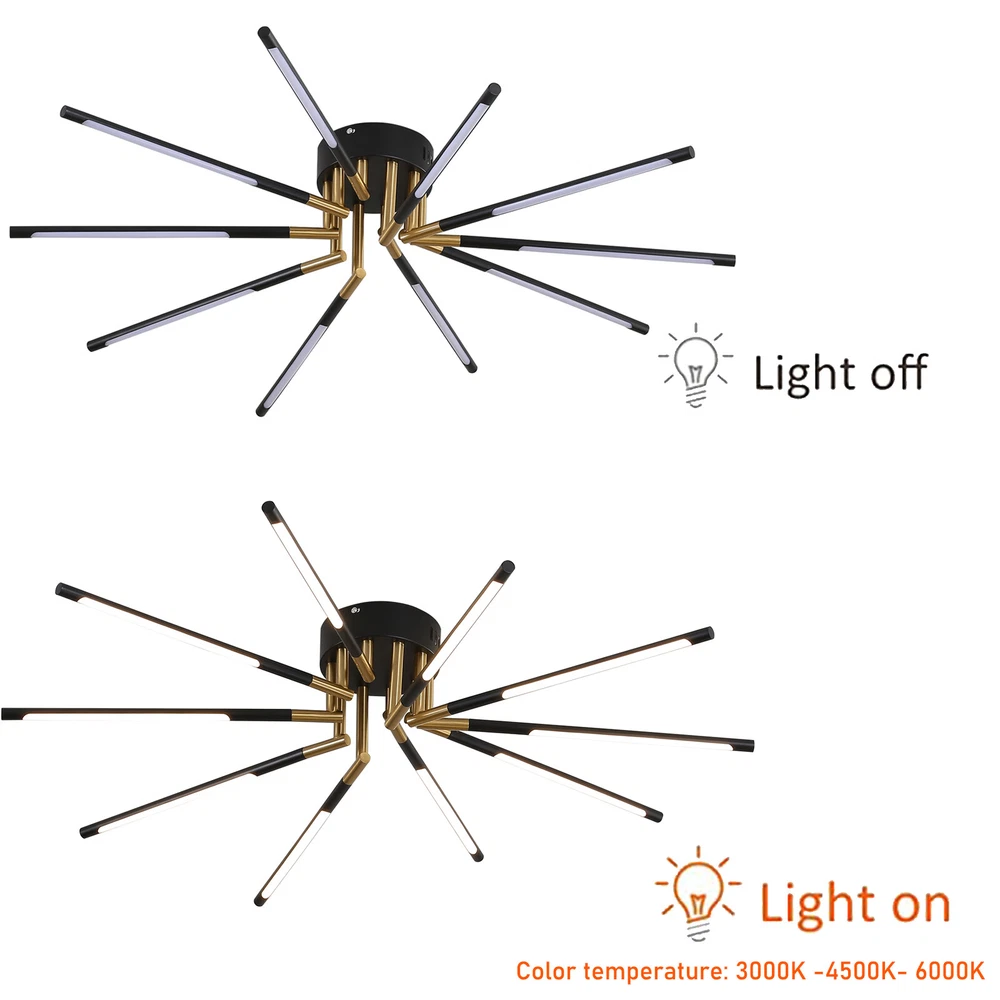 Ceiling Light Led Chandelier Ceiling Lamp Fixture Dimmable Lamp & Remote Control 【Ceiling Light Fixture Beautiful Decoration】- Black and Gold Led Modern Semi Flush Mount Ceiling Light Fixtures Will Be a Nice Antique Lighting Decoration Gift for House Remodel.it Is More Stereoscopic than Other Flat Ceiling Lights, It Creates a Beautiful and Cozy Atmosphere When Turning on. 【Dimmable Led Ceiling Light】- the Modern Led Ceiling Light Can Be Adjusted by the Remote Control, the Color Temperature Is Changed from 3000k to 6000k, and the Brightness Is Changed from Low to High. You Can Adjust Different Mode to Help You Fall Asleep and Reduce Work Pressure, Bringing You a Perfect Night. 【Adjustable Light Direction】- the Dimmable Led Ceiling Light Uses a Unique Interface Design, This Function Makes Ceiling Light Very Easy to Install.which Can Be Directly Inserted, Easy to Disassemble, Easy to Install, and Easy to Replace. (Note: All Light Poles Must Be Installed, Tested and Installed Before Powering up. ★{Size and Material} the Diameter of the Lamp Is 33.46"/85 Cm. the Fixture Height Is 5.9”/15cm. Made of Metal and Acrylic , Hard Texture, Sturdy and Durable. 【Multi-scenarios】-the Semi Flush Mount Ceiling Light Fixtures Is Suitable for Your Living Room Light, Dining Room Light Fixture and Bedroom Light Fixture. Have This Modern Chandelier in Your Room, It Will Be the Focal Point of Your Room. ✦Bulb Information Bulb Type: Led Color Temperature: 3000k -4500k- 6000k Dimmbarer Bereich 10%-100%,with Remote Control。 Wattage:72w Luminous Flux: 4800lm Voltage: 110-220v Suggested Room Area: 20-25㎡. Design: Modern Led Rod-shaped Lamp Pole Combination Light. * Package Content 1 X Ceiling Light 1 X Instruction Manual 1 X Hardware Bag ✦Suggestion: 1. for a Safe and Secure Installation, Please Ensure That the Electrical Box to Which This Fixture Will Be Mounted Is Properly Attached to a Structural Member of the Building. 2. All Wires Are Connected. When Unpacking, Be Careful Not to Pull with Wires As a Bad Connection May Result. 3. Do Not Connect Electricity Until Your Fixture Is Fully Assembled. *Features � Convenient Use,Unique Appearance,Reliable Quality� Year of manufacture 2014 Features ★Stable characteristic, high reliability★ Warranty 3 years Highlights stable performance, Compact Design,Unique Appearance,high reliability, Fast shipping Featuers Long service life, Easy installation,Convenient Use,Easy Operation, Compact Design,Unique Appearance,high reliability Featurs High-quality Material, stable performance, Stable characteristics, high reliability, Fast shipping shipping notice Can not ship to Puerto Rico,Alaska/Hawaii Characteristic Convenient Use,Easy Operation,Easy installation Surface Finish Made of high quality material Custom Bundle No Festures Durable Material, Good quality Item Condition Brand New Custom Bubdle No Brand Unbranded Type Chandelier Sensor Type n/a Style Modern Room Sunroom Lighting Technology LED Material N/A Number of Settings N/A Finish N/A Color N/A Cord Color N/A Light Color N/A Shade Shape N/A Power Source N/A Installation Area Indoor Manufacturer N/A Energy Star A Department Adult Control Style N/A LED String/Strip Type N/A MPN N/A EC Range A+ - F
