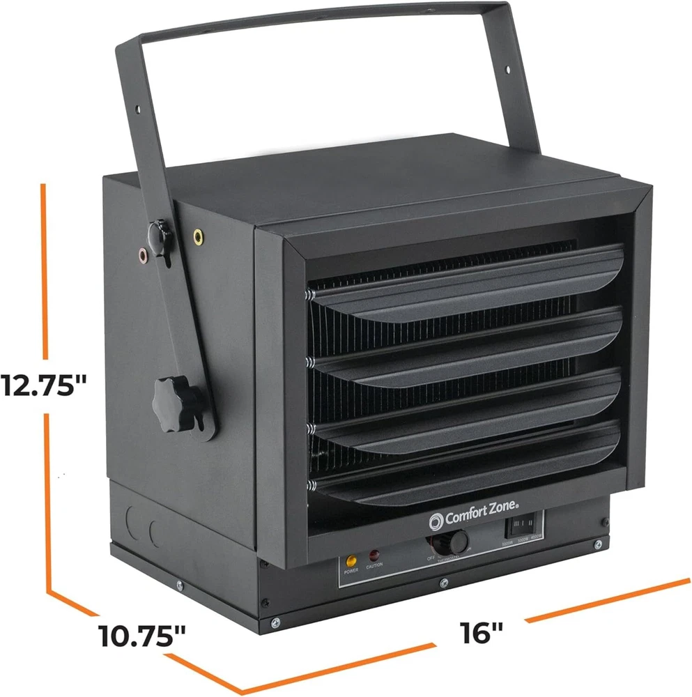 EFFICIENT CEILING MOUNT: With its ceiling-mount design and hard-wired installation, this fan-forced heater is perfect for spaces like warehouses, garages, and storage areas where floor space is limited. By utilizing the overhead space, you can maximize the utilization of your area while still enjoying powerful heating capabilities. Embrace the space-saving benefits of this ceiling-mounted heater and keep your valuable floor space free from obstructions. ROBUST STEEL CONSTRUCTION: Constructed from heavy-gauge steel, the body of this commercial heater exhibits exceptional durability, making it highly resistant to the temperature fluctuations commonly found in poorly insulated areas. With its robust steel construction, this heater is built to withstand the rigors of demanding environments, ensuring long-lasting performance and reliable heating capabilities. Embrace the reliability and durability of this steel-constructed commercial heater for efficient heating in challenging conditions. PRECISE HEAT DISTRIBUTION: The inclusion of louvers and an adjustable mounting angle enables targeted heating, allowing you to direct the airflow precisely where it is needed most. With its fan-forced design, this heater facilitates the efficient distribution of heat throughout the room, ensuring a consistent and comfortable environment. Experience the benefits of precise heat distribution and optimal airflow with this versatile and effective heating solution. USER-FRIENDLY TEMPERATURE CONTROL: The ceiling mount heater features a dual knob thermostat that provides convenient and precise control over the temperature settings. With these intuitive controls, you can easily adjust the heat output to achieve the perfect level of warmth for your space. The quick on/off functionality ensures effortless operation of the heater, allowing you to enjoy immediate comfort with just a simple twist of the knobs. Experience the convenience and ease of use offered by this efficient temperature control system. ENHANCED SAFETY FEATURES: Designed with your safety in mind, this ceiling mount heater is equipped with intelligent safety features for worry-free operation. The built-in sensor monitors the temperature and automatically shuts off the device if it detects overheating, providing reliable protection against potential hazards. The power indicator light conveniently illuminates when the unit is in use, giving you clear visual confirmation of its operational status. With these smart safety measures in place, you can enjoy the warmth and comfort.