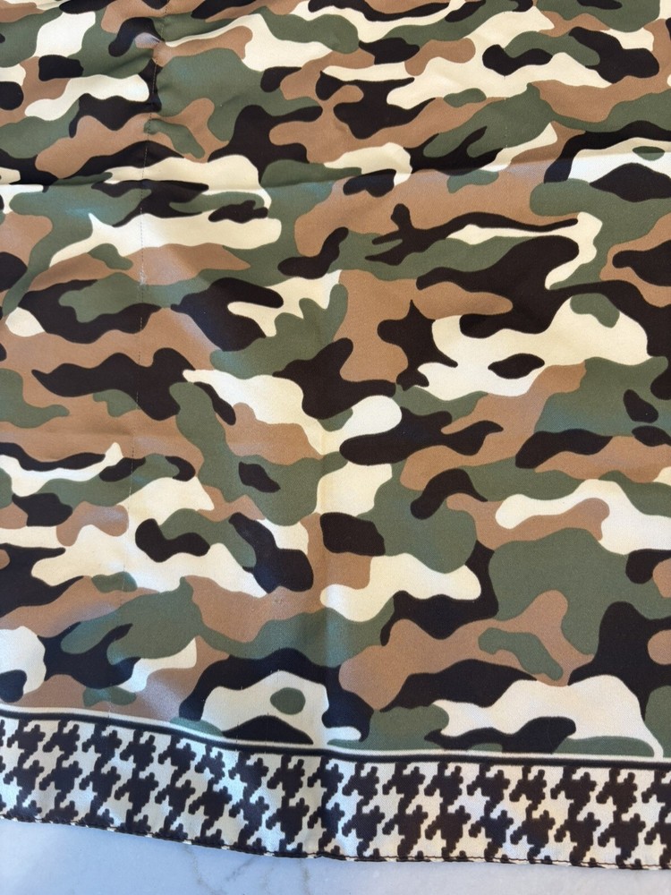 This is a stylish Cejon neckerchief for women featuring a trendy camo houndstooth print in multicolor. The neckerchief is brand new with tags, adding to its appeal. Perfect for adding a pop of color and pattern to any outfit, this accessory is sure to make a statement. The combination of the unique print and the brand's reputation for quality make this Cejon neckerchief a standout piece for any fashion-forward individual.