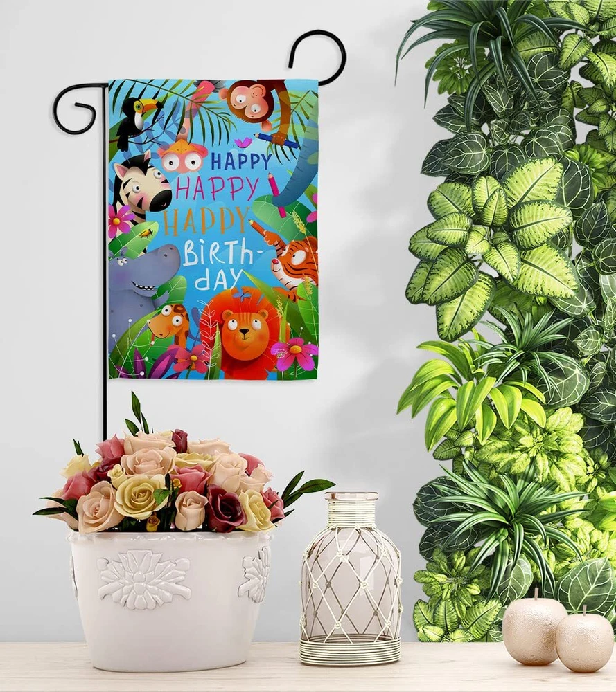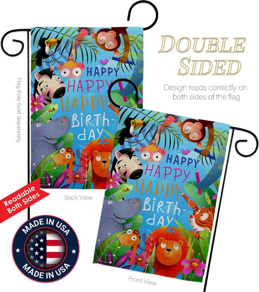 PROUDLY Made In USA - Package And Product Designed In California PURCHASE WITH CONFIDENCE - From 's US Authorized Resellers MADE OF DURABLE - 100% Thick Polyester Fabric construction helps resist the wear and tear from frequent use TEXT Readable Both Sides - Garden Flag Set Double-Sided Print DURABLE FLAG - Double stitching panels on multiple rows and high quality Sleeve to provide lasting strength VIBRANT COLORS - With UV-Resistant Maintains Its Colors All Season Long FEATURES - Sleeve Hanger fits standard Banner/Flagpole, Bracket, Arbors or stand Hardware Included!