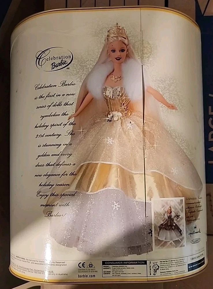 This Celebration Barbie 2000 Special Edition doll is a must-have for any Barbie collector or enthusiast. With blonde, wavy or straight hair, blue eyes, and a light complexion, this 12-inch fashion doll is dressed in an outfit and accessories that are perfect for any occasion, especially celebration. This original and licensed reproduction doll is made of vinyl, plastic, and fabric, and was manufactured in 2000 as part of the Holiday Celebration Barbie product line. Add this vintage doll to your collection and let the celebration begin!