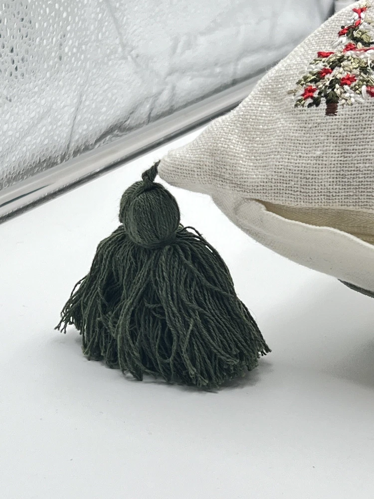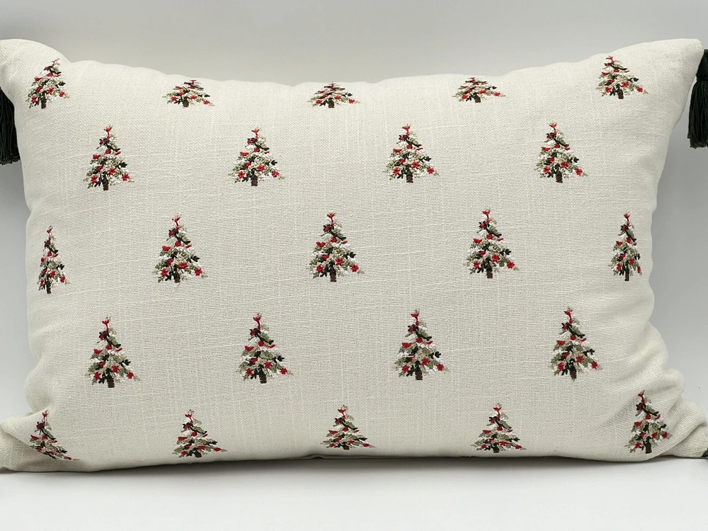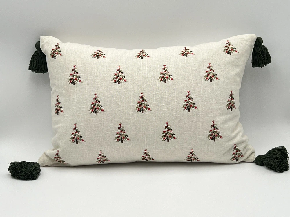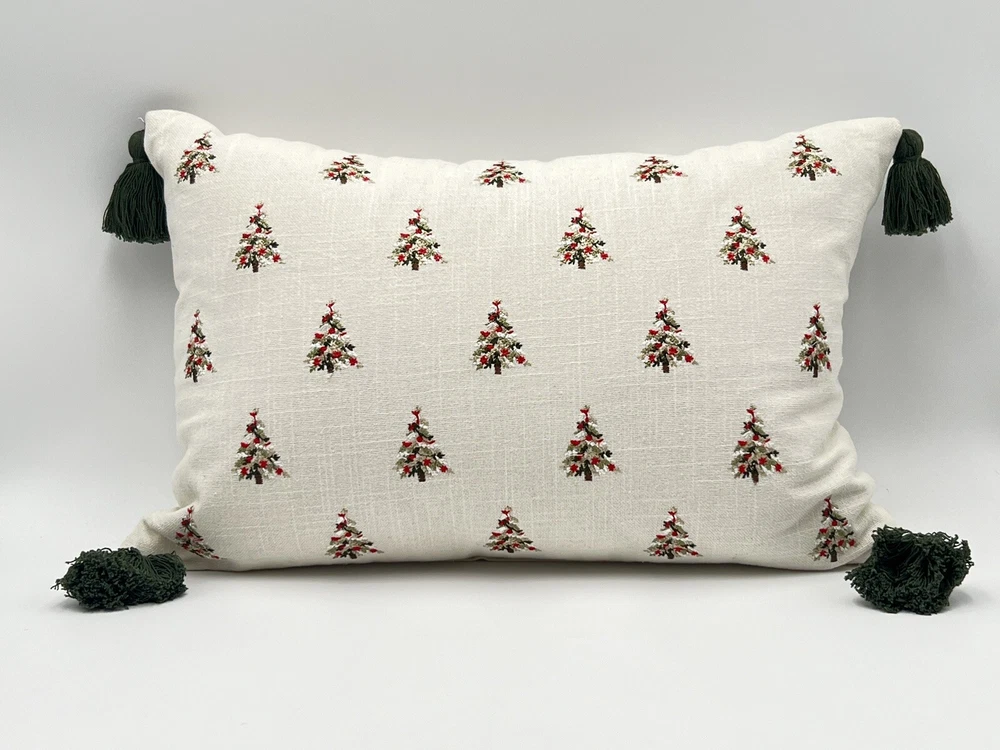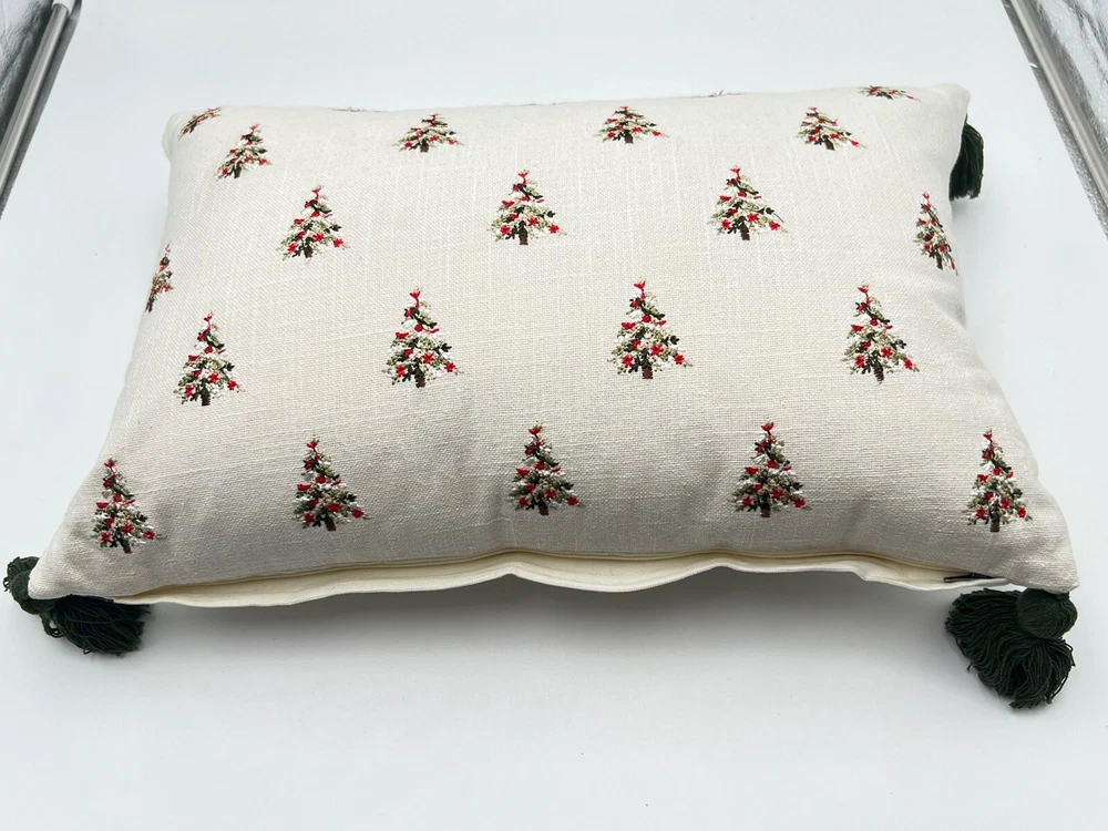 Celerie Kemble Throw Pillow Christmas Trees With Tassels Off White 20”x12”
