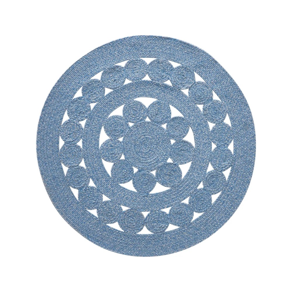 Give your home a burst of coastal country style with a rug that is both stylish and practical. The Celeste Blue Round Rug measures 3 ft and is crafted with 100% recycled polyester material (PET) making it waterproof and durable. The circular rug is suitable for both indoor and outdoor use and features a soft denim blue coloring suitable for a wide variety of country farmhouse and cozy cottage looks. Free Shipping Over $49.99* Details Celeste Blended Blue Indoor/Outdoor Rug 3ft Round - 36 in Product Description: Give your home a burst of coastal country style with a rug that is both stylish and practical. The Celeste Blue Round Rug measures 3 ft and is crafted with 100% recycled polyester material (PET) making it waterproof and durable. The circular rug is suitable for both indoor and outdoor use and features a soft denim blue coloring suitable for a wide variety of country farmhouse and cozy cottage looks.