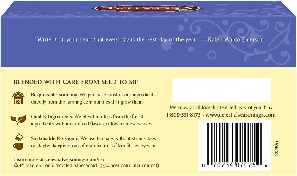 Brand: Celestial Seasonings Product: Tea & Infusion UPC: 191566045908 gtin13: 191566045908