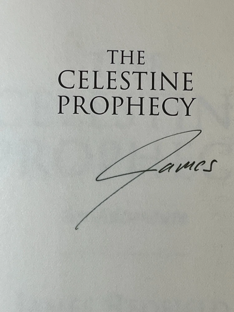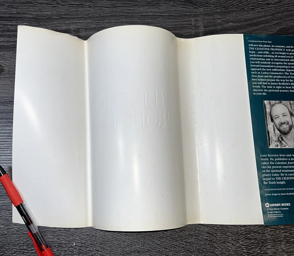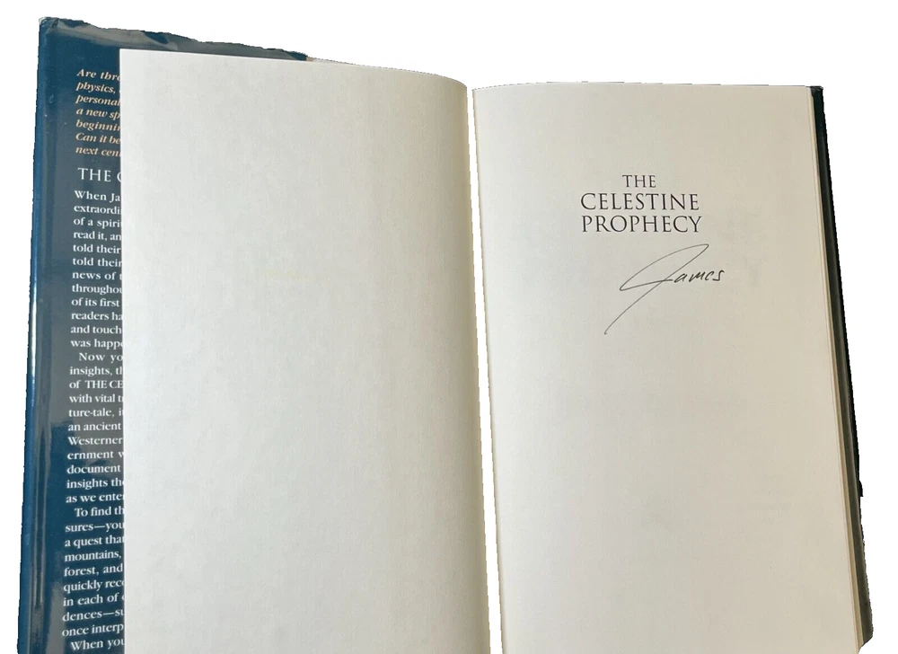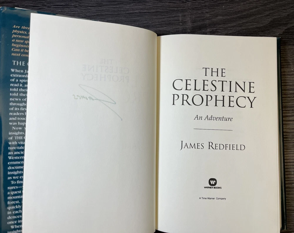 "The Celestine Prophecy: An Adventure" by James Redfield, is a captivating piece that will take you on a journey through fairy tales, folk tales, legends & mythology, visionary & metaphysical, and action & adventure. The book is a first edition, first TW printing (March 1994 Time Warner) hardcover format, published by Time Warner in 1994, and signed by the author. Copywrite 1993. The book measures approximately 9.5 inches in length, 6.2 inches in width, and 0.8 inches in height with 247 pages. Book is in good condition, dust jacket has outer wear and yellowing on the inside. Some cosmetic imperfections visible on the outer pages. Book spine is in good shape. No dog eared pages or writing in the inside of the book other than the author's signature. Please examine closely for detail.