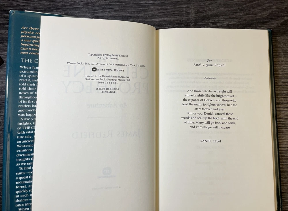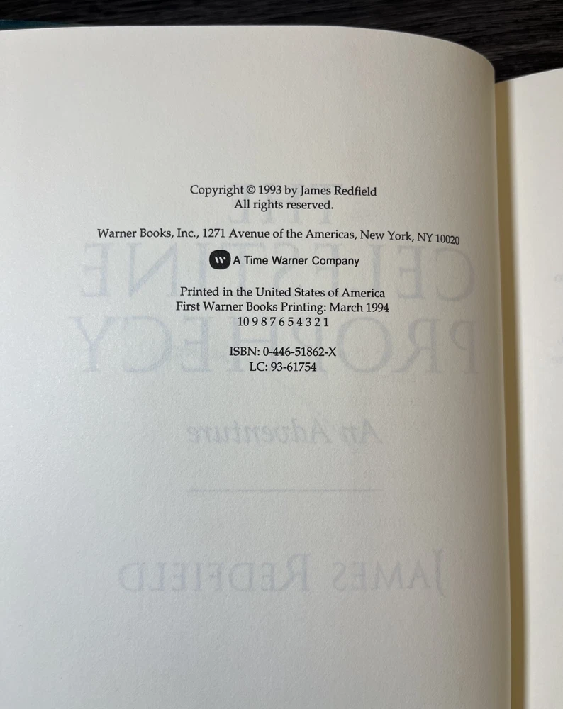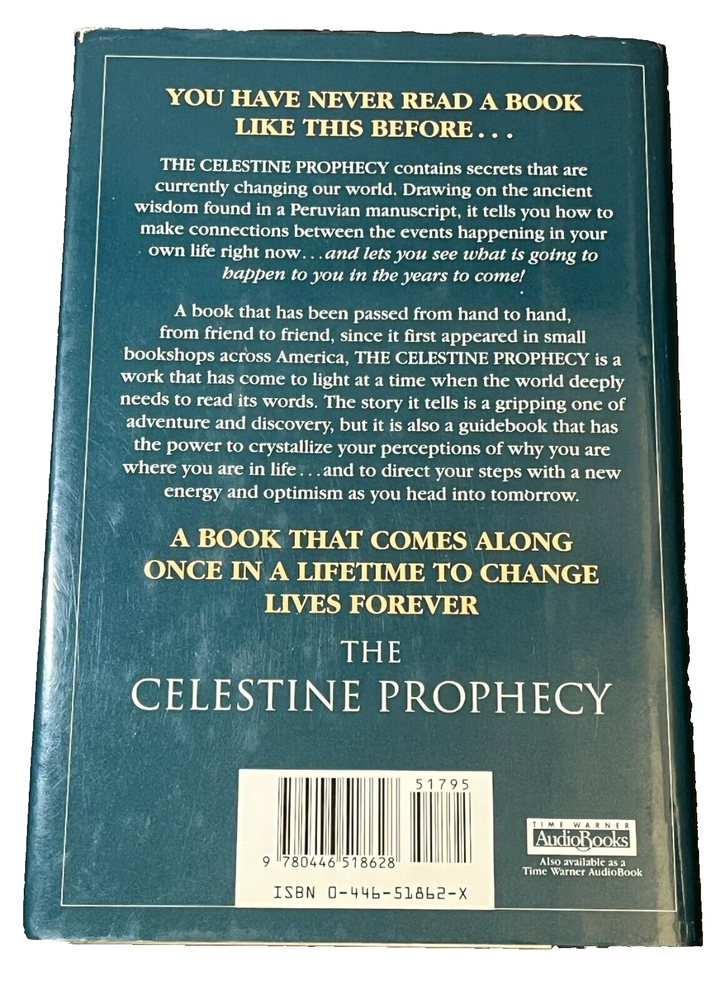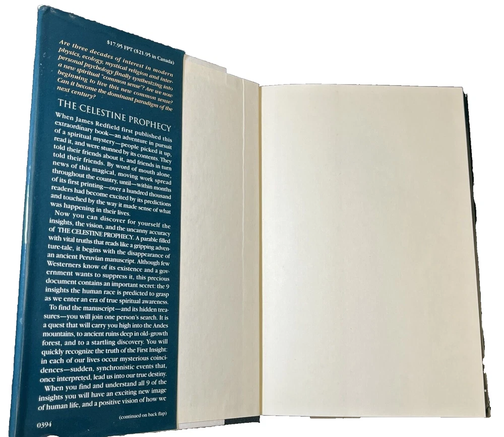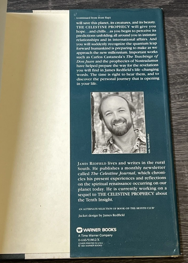 "The Celestine Prophecy: An Adventure" by James Redfield, is a captivating piece that will take you on a journey through fairy tales, folk tales, legends & mythology, visionary & metaphysical, and action & adventure. The book is a first edition, first TW printing (March 1994 Time Warner) hardcover format, published by Time Warner in 1994, and signed by the author. Copywrite 1993. The book measures approximately 9.5 inches in length, 6.2 inches in width, and 0.8 inches in height with 247 pages. Book is in good condition, dust jacket has outer wear and yellowing on the inside. Some cosmetic imperfections visible on the outer pages. Book spine is in good shape. No dog eared pages or writing in the inside of the book other than the author's signature. Please examine closely for detail.