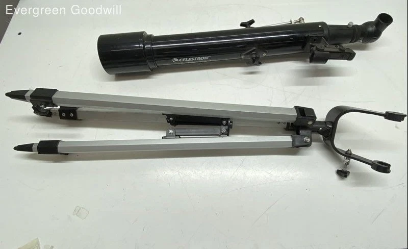 Celestron Telescope Brand: Celestron Type: Telescope Condition: Fair - shows sign of wear Evergreen Goodwill helps people get jobs across Northwest Washington by offering high-quality free job training, education and job placement. We empower individuals to overcome barriers to working by providing comprehensive support and connecting them with life-changing job opportunities, ensuring they are career-ready and can support themselves and their families. ***Disclaimer*** All items were donated to Evergreen Goodwill of Northwest Washington with no history or provenance. The auction is for all items pictured. Items may need servicing and/or benefit from a cleaning upon arrival. Please see photos for additional details and feel free to ask questions. PAYMENTS Please note that eBay will automatically cancel your entire order if the oldest item exceeds 4 days without payment. Once an order is canceled, we are unable to re-invoice, and the item will be relisted. To request a combined shipping invoice, please send one request within 2 days of winning your first item to avoid cancellation of your order. After a combined invoice has been sent, we are unable to add additional items to it. SHIPPING Local pickup is not available at this time. International shipping is not available at this time. We offer combined shipping as long as items will ship safely together. Auctions must end within 2 days of each other to be eligible for combined shipping. Please hold off on payment until all auctions have ended then proceed to checkout. Please do not pay for any items individually if you wish to have them combined - they must be paid at the same time. Items listed for flat-rate shipping are not eligible for combined shipping. PO Box addresses will require USPS shipments as FedEx Ground will not deliver. If FedEx is selected we may need to invoice for additional shipping costs.
