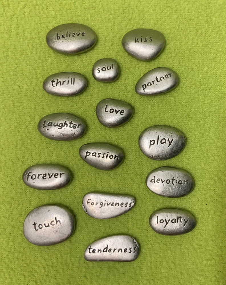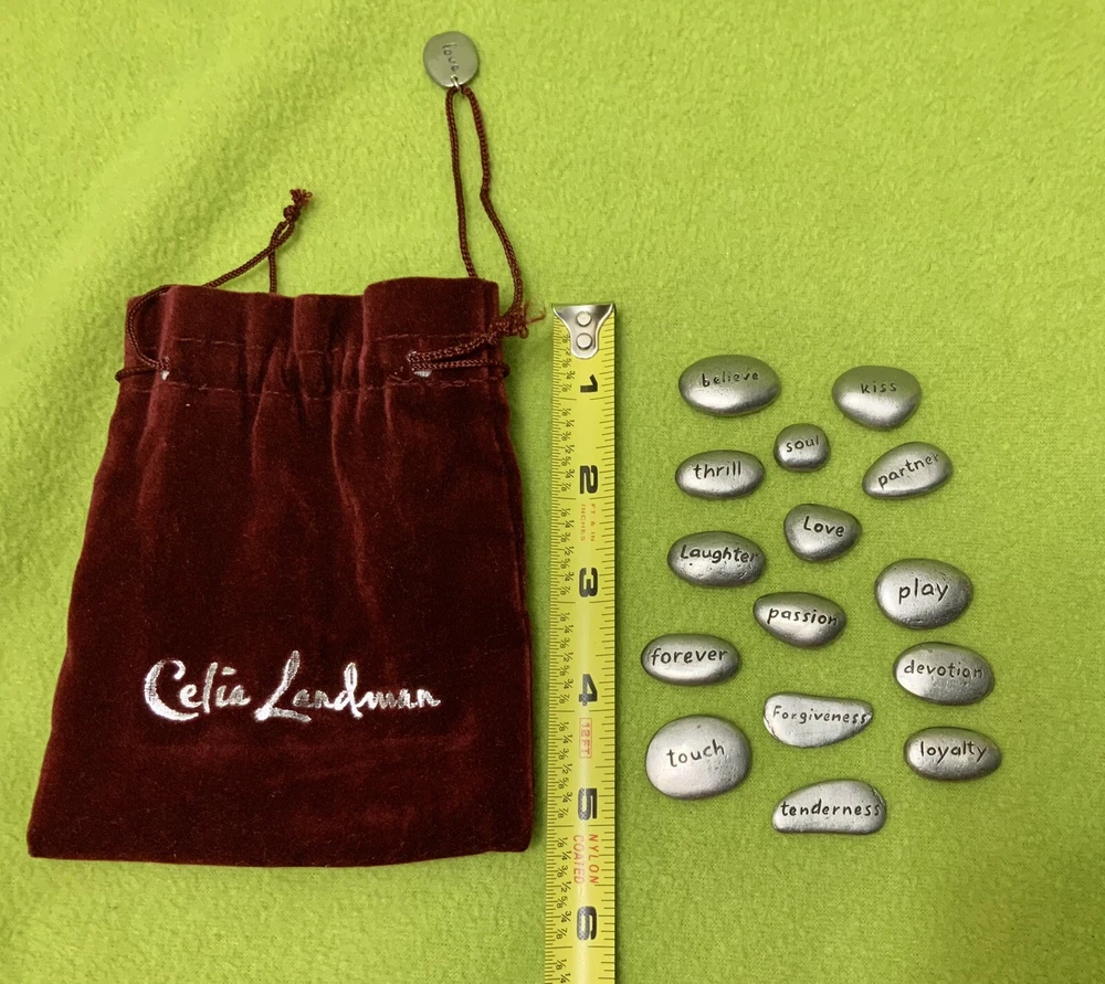 Celia Landman pewter found words tokens Comes from a smoke and pet free home! Please view photos for detailed condition!