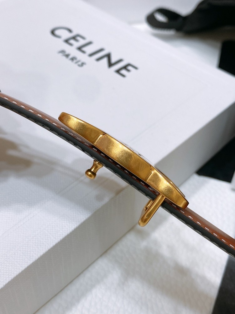 The Celine Brown Double-sided Waist Belt in European size 85 is a stylish accessory suitable for women. Made of high-quality leather with a medium width and solid brown color, this belt features a gold-plated buckle for a touch of elegance. The logo accents add a subtle yet chic detail to the design. With a waist size range of 26-30 inches, this belt is perfect for adding a fashionable flair to any outfit. The versatile style of this belt makes it a must-have for any wardrobe.