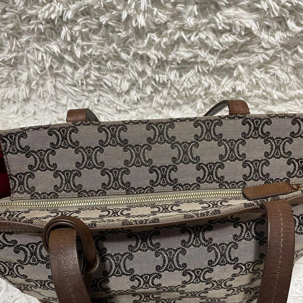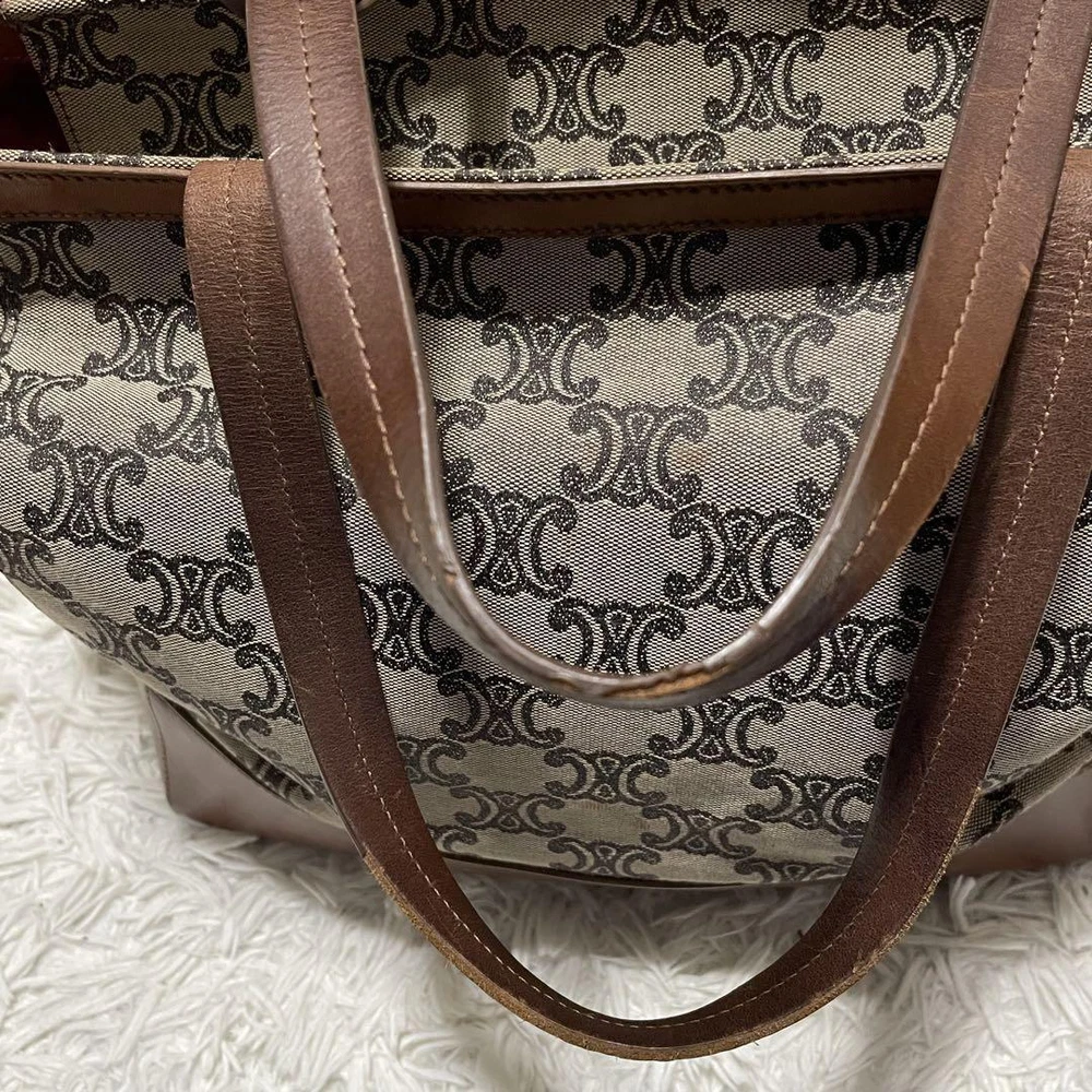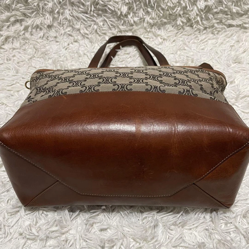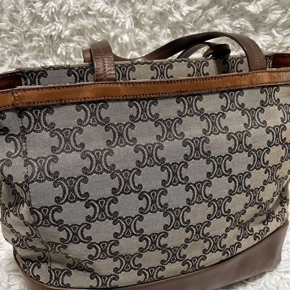 Celine Tote Bag Paris Macadam Pattern Canvas A4 Storage Leather