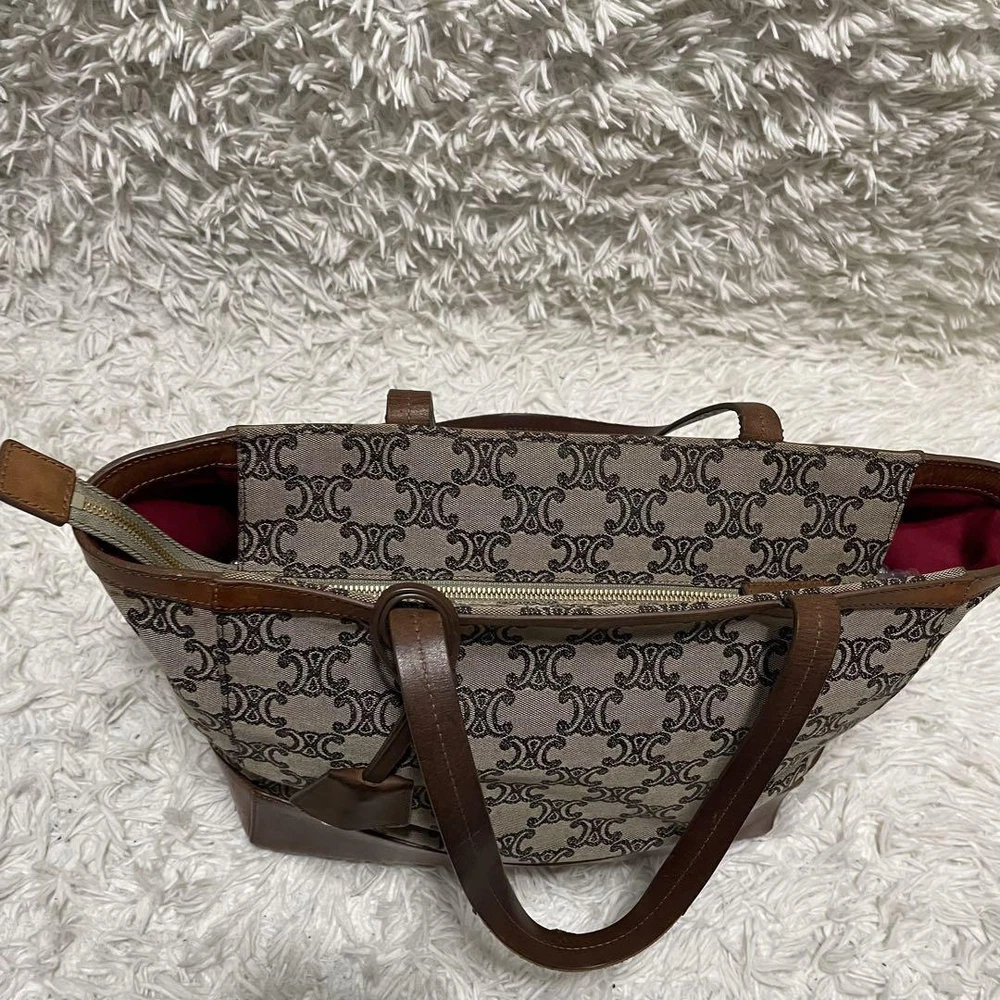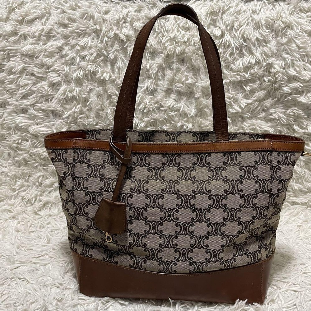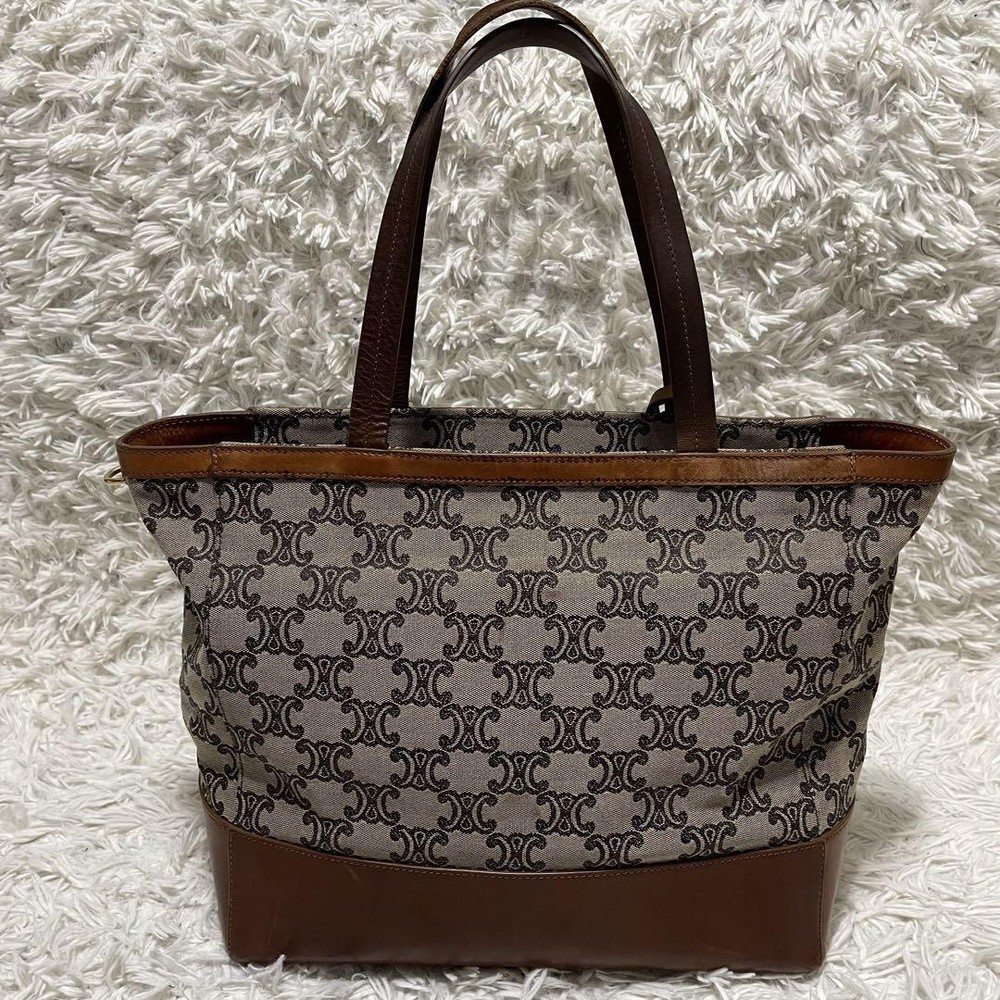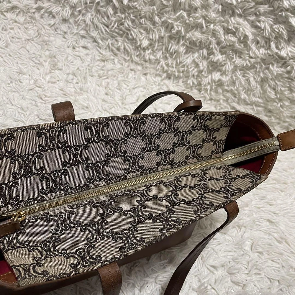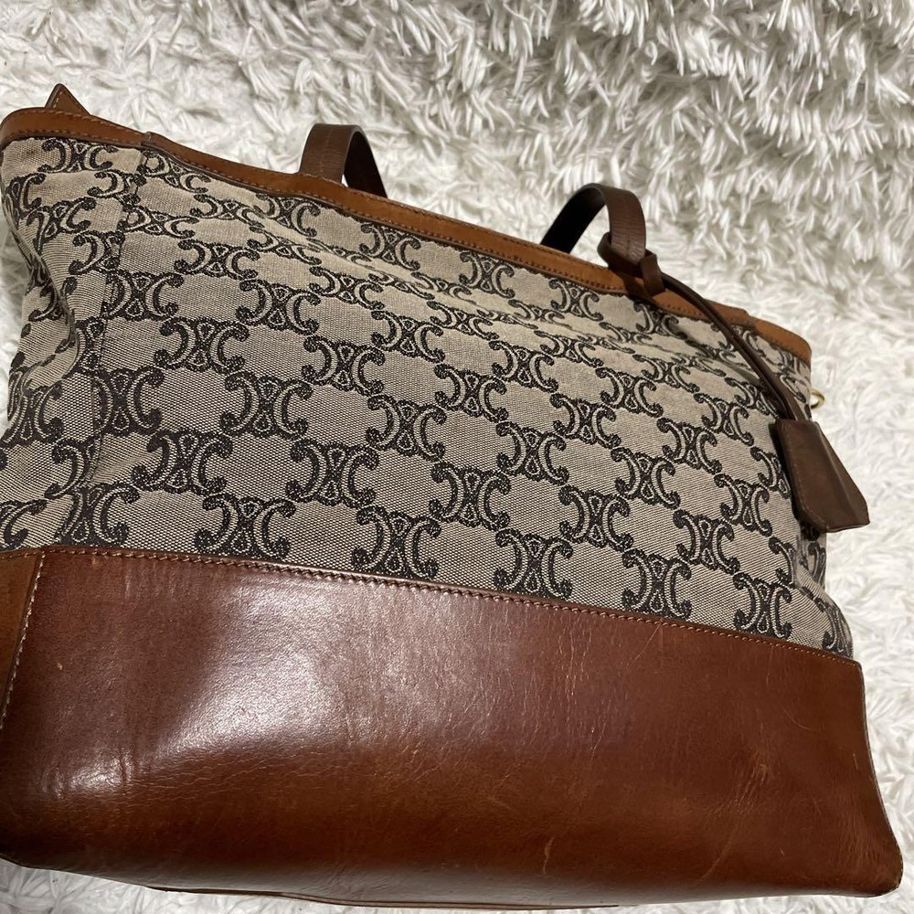 Celine Tote Bag Paris Macadam Pattern Canvas A4 Storage Leather