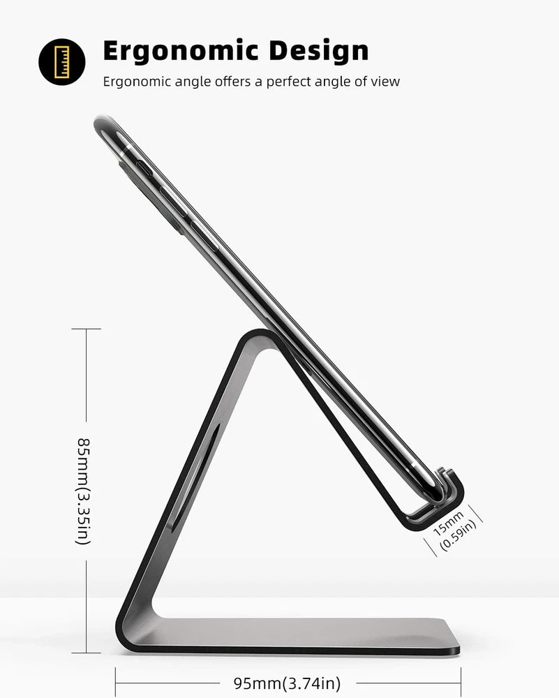 Store New Arrivals Add to Favorite View Feedback Contact Cell Phone Stand, Phone Dock & Holder up to 4-8 inches , Stand for Office Desk Description Product Dimensions 3.74 x 3.34 x 2.95 inches Compatible Devices Smartphones Item Weight 3.52 ounces Department phone stand Form Factor vertical Product Description Wide Compatibility: This cell phone stand is compatible with all 4-8 inches smartphones in phone cases, like iPhone 16, iPhone 16 Pro, iPhone 16 Pro Max, iPhone 16 Plus, iPhone 15, iPhone 15 Pro, iPhone 15 Pro Max, iPhone 15 Plus iPhone 14, iPhone 14 Plus, iPhone 14 pro, iPhone 14 pro max,13 Mini, iPhone 13, iPhone 13 Pro, iPhone 13 Pro Max, 12, 11 Pro XS Max XR X 8 7 6 6S Plus, Galaxy S21 Ultra, S20, S10, S9, S9 Plus, A71, A51, A11, Edge, Note 20 ultra etc. Stable and Anti-scratch: The iPhone stand is made of high-quality aluminum alloy with a nice finish. Stable and easy to watch Youtube or FaceTime. Besides, rubber non-slip pads protect the surface of your phone case and desk from scratches. Make Your Life Easier: Using this desktop phone holder at home to prop up your phone, you can better view recipes while cooking. It's also great for on your nightstand, so no more fumbling around in the morning to shut off the alarm. Suitable Viewing Angle: The phone cradle for desk provides you with a comfortable viewing angle. Put it on your office desk, and you can see at a glace incoming notifications and calls when the phone is in silent mode. Thoughtful Detail Design: A large hole in the back allows a charging cable to bend gracefully away. And the outer edge of this hole is beveled so that it will not cut into your cord — a perfect dock for your phone. ABOUT US Explore our handpicked range of top-quality items at fantastic prices. Our goal is to make your shopping experience as smooth and enjoyable as possible. Thanks for visiting! Warm regards, The FerroWarehouse Team SHIPPING We are always working hard to ensure your package arrives as soon as possible. Please understand that some factors like weather, high postal traffic, and the performance of shipping companies are outside of our control. We offer free shipping to the lower 48 states and Canada, with orders processed within 2 business days of payment—often sooner. Please provide a physical address; we do not ship to P.O. Boxes. For shipping outside the U.S. and Canada, delivery time, cost, and processing may vary. International customers are responsible for all duties and taxes. To estimate shipping costs, please proceed to checkout. Thank you for shopping with us! RETURNS We want you to be completely satisfied with your purchase. If you need to return an item We accept returns within 30 days of receipt. Items must be unused and in original packaging. Please contact us first if you have any problems/questions/concerns to initiate a return and get instructions.. We will be happy to resolve any issues you may have in a cordial and friendly manner. We appreciate your Postive Feedback, and will do the same in return. PAYMENT We accept PayPal. CONTACT US This page content is yet to come Please ad us to your favorite seller and visit again later Thank You CUSTOMER SATISFACTION We try our very best to make sure every customer is completely satisfied. If there's a problem, message us! We're happy to help.