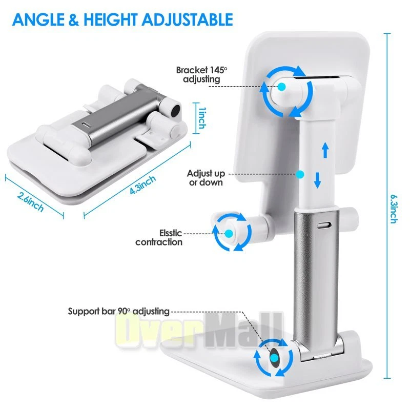 Cell Phone Stand Tablet Mount Foldable Desktop Holder Cradle Dock Mobile iPhone Cell Phone Stand Tablet Mount Foldable Desktop Holder Cradle Dock Mobile iPhone BEST CUSTOMER SERVICE ON OUR sale2015express EBAY STORE↓ ↓ ↓ 〓SHIP From US Local Stock 〓FAST & Free, 1-6 Days Arrival 〓FREE Return, Seller Pay!! 〓LIFETIME Money Back Guarantee 〓LIFETIME Free Replacement Guarantee 〓LIFETIME Warranty 〓QUICKLY Reply within 24 Working Hours 〓 MOST orders ship within 1 business day with Tracking Number 〓 ANY PROBLEM please email us before feedback, thanks! Add our listing to Watchlist Or Add to Cart , you will get more discount!!! Features: 【Universal Compatibility】 : Universal phone stand compatible with iPhone and all smartphones between 4 and 8 inches, like iPhone X 8 7 6 6S 5 5S 4S Plus XS Max XR, Nintendo Switch, Huawei, Samsung Galaxy S10 S9 S8, Note 9 , LG, Sony, Nexus, Apple phones, even these phone with case, the hook width of the stand is13mm, please make sure the thickness of your device is no more than 13mm (0.51 in). 【Adjustable & Ergonomic Design】 : This mobile phone stand can be easily adjusted to the (10°~ 45°) angle by hand, and it stays firmly in place. The higher height aluminum arm provide comfortable viewing angle which helps to fix your posture and reduce neck & back strain. 【Nice Looking & Hands-free】 : This phone stand looks very stylish, supports hands-free. It's ideal for watching video, reading and studying, playing games, making video phone call and video conference, using Facetime and watching YouTube. It is a great desk accessories for your office and home. 【Fully Protective Silicone Pad】 : This iPhone Dock features fully covered anti-slip silicone pad which can maximum protect your device from any scratches and slide. Specification: Color: pearl white Application: universal for mobile phones and tablets Folding size: 6.6 (width)*2.6 (thickness)*11 (length) cm/2.6*1*4.3inch Extended height: 16cm/6.3inch Package includes: 1x Desktop Phone Holder 1x Protective Sticker Payment Shipping About Feedback About us Contact us Payment 1. Paypal Accept. 2. Payment should be sent within 4 (FOUR) days auction closing. Or unpaid dispute will be filed for closing auction. Shipping 1. Fast shipping from NJ, US. 2. Shipping available time: Mon. - Fri. exclude holidays 3. The orders will be handled in 24 hours after payment got. Ship to Paypal Address ONLY. About Feedback If you are dissatisfied for any reason, please do not be quick to leave negative/neutral feedback. We work hard to make sure EVERY CUSTOMER 100% SATISFIED and resolve any problem for you and always leave positive feedback to all our customers. About us 1. Welcome to OverMall, We pride ourselves on providing the outstanding service and high qualtiy products, make our customer feel confident buying online. 2. For the most US address, we offer free standard shipping . 3. By shopping with us, you can guarantee the latest technology for the best possible price. Contact us You are welcomed to contact me for any question. I will reply your email in about 24HRS in business days.