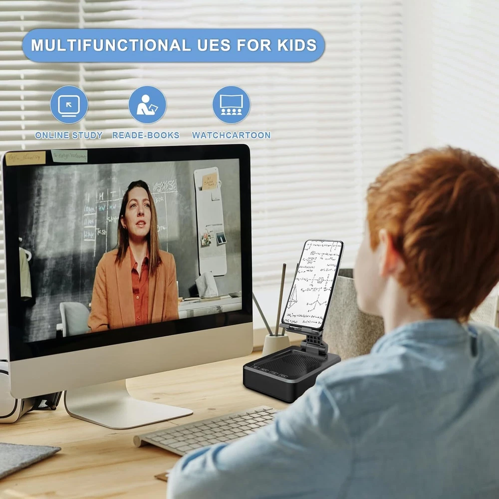 Cell Phone Stand with Wireless Bluetooth Speaker Compatible for Any Smartphones,Anti-Slip Design Phone Holder with HD Surround Sound Bluetooth Speaker for Home,Office,Outdoor Speaker Maximum Output Power 4.23E+3 Watts Connectivity Technology Bluetooth Audio Output Mode Surround Mounting Type Tabletop Mount Stable and Anti-Skid: The speaker stand pad and the bottom of this cell phone stand are fully covered by anti-skid silicone. Stable and easy to watch Youtube or FaceTime. Besides, silicone non-slip pads protect the surface of your phone case and desk from scratches. With this lazy bracket, free your hands, especially when you are busy in the bedroom, kitchen, gym or office. 2 in 1 Bluetooth Speaker with Phone Stand:The phone cradle for desk provides you with portable Bluetooth speaker. The wireless Bluetooth speaker delivers stunning sound with enhanced bass, tight mid, and crystal clear highs without distortion at any volume. Broad Compatibility: The cell phone stand is easy to use, universally compatible with cell-phones and iPad. Compatible with devices from 4 to 13 inch, such as iPhone 7/8/9/10/11/12/Max/XS/XS Max/XR, iPad mini/Max/Air/Pro, E-reader, Switch and more 4 to 13 inch devices cell phones and iPads. Gifts for Family and Friends: The cell phone stand with wireless bluetooth speaker provide you with a comfortable and adjustable viewing angle. A good present for kids, help them free their hands and enjoy the auditory feast. The best gifts for the aged, help them watch videos louder.