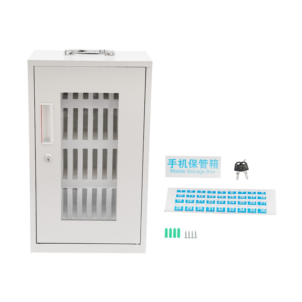 Description Cell phones have become a very important item in people's daily lives, but some people's over-reliance on cell phones will bring various adverse effects to work and study. This cell phone storage cabinet can help you solve this trouble! All you need to do is put the cell phones in it before class or meeting, and it will help them to greatly improve their concentration and form an efficient study and meeting environment. Key Features Premium Material: This product is made of high-quality steel with welding and electrostatic spraying processes, which is sturdy, rust-proof, corrosion-proof, and impact-resistant, and can maintain beauty and practicality for a long time. Large Capacity: It measures 12.6*8.27*20.08 inches(with 36 slots), which is enough to hold 36 cell phones at th Cell Phones Storage Cabinet, Storage Cabinet for Cell Phones, Cell Phone Holder Description Description Cell phones have become a very important item in people's daily lives, but some people's over-reliance on cell phones will bring various adverse effects to work and study. This cell phone storage cabinet can help you solve this trouble! All you need to do is put the cell phones in it before class or meeting, and it will help them to greatly improve their concentration and form an efficient study and meeting environment. Key Features Premium Material: This product is made of high-quality steel with welding and electrostatic spraying processes, which is sturdy, rust-proof, corrosion-proof, and impact-resistant, and can maintain beauty and practicality for a long time. Large Capacity: It measures 12.6*8.27*20.08 inches(with 36 slots), which is enough to hold 36 cell phones at the same time to meet your storage needs. User-friendly Design: The slot (0.59*3.54*4.72 in) is compatible with most sizes of cell phones and also serves to hold the phone in place, and the locking design prevents the phone from being stolen and increases the safety of use. Meet Your Needs: This product doesn't need to be assembled, you can use it directly after receiving it. The hanging holes on the back and the screw accessories in the package allow you to easily mount it on the wall to save space. You can also place it directly on your desktop, which is very convenient. Highly Portable: With a compact size (12.6*8.27*20.08 inches), lightweight (5.51 lbs), and a carrying handle on the top, it's very easy to carry. Easy to Clean: The product has a simple structure and a smooth surface that can be easily cleaned with a soft cloth. Ideal Gift: With its high security and large capacity, this product is the ideal gift for family, friends, and others who need to centrally manage their cell phones. Protective Packaging: The bubble bag can better protect your product during transportation and make it delivered to you completely to the greatest extent. Good Customer Service: We stand behind all our guests and look forward to assisting you with your purchase. It is our pleasure to answer your confusion and questions. The end of the story between us is not "we sell and you buy". Details Pearl Cotton Slot: It effectively prevents wear and tear of the phone and enhances the stability of the phone placement. Comfortable Handle: The ergonomic handle is easy to grip and easy to open and close. Practical Label: You can write your name on it and stick it on the corresponding cell phone slot, which is easy to find and not easy to be confused. Application This product can be used in schools, factories, training camps, conference rooms, laboratories, and other places that need to store cell phones uniformly. How to Install 1. Mark the distance between the two ends on the wall by measuring with a ruler (not included). 2. Punch holes in the marked locations and torque the screws. 3. Hang the screw holes on the back of the cabinet on the screws. Specification Color: Silver Style: Modern Shape: Rectangle Material: Steel, Pearl Cotton Process: Welding, Electrostatic Spraying Assembly Required: No Number of Slots: 36 Number of Tiers: 4 Each Slot Size: 1.5*9*12cm/ 0.59*3.54*4.72 in Product Size: 32*21*51 cm/ 12.6*8.27*20.08 in Gross Weight: 3kg/ 6.61 lbs Net Weight: 2.5kg/ 5.51 lbs Package Size: 55*25.5*33 cm/ 21.65*10.04*12.99 in Package Included 1* Cell Phone Storage Cabinet 2* Keys 1 Sheet* Name & Number Label All Accessories for Installation Notes Please keep your key safe when using it to avoid losing it. Please allow the slight color difference caused by the shooting light and the 1-3 cm error due to manual measurement, and make sure you do not mind before ordering. Payment Delivery details Terms of sales About us Contact us Payment We accept ebay payment 。 Fees such as import duties, taxes are not included in the item price or shipping costs. These charges are the buyer's responsibility. Delivery details Shipping: 2-9 working days to: USA Terms of sales We maintain high standards of excellence and strive for hundred percent customer satisfaction. Feedback is very important to us. We hope that you contact us immediately before you give neutral or negative feedback, so that we can address your concerns. It is impossible to address issues if we do not know about them! About us Your satis faction is our ultimate goal. We work hard to earn your trust and future business. Our certified technicians have tested each item before shipping. The unit comes with 1 year limited warranty on all manufacturing defects. a) If you receive a defective item, you may return it or ask for a discount. Please contact us within 14 days after you receive the package. b) What you returned must be intact and in its original packaging as re? u. Customer is responsible for shipping costs of the returned item. c) We will cover the cost of shipping back t with the shipping rate indicated in the registration page. We will send you a new unit or refund the full payment you paid. Thank you. Contact us Business Hour Business Hour: Monday To Friday: 8:30 AM to 5:00 PM (Beijing China time