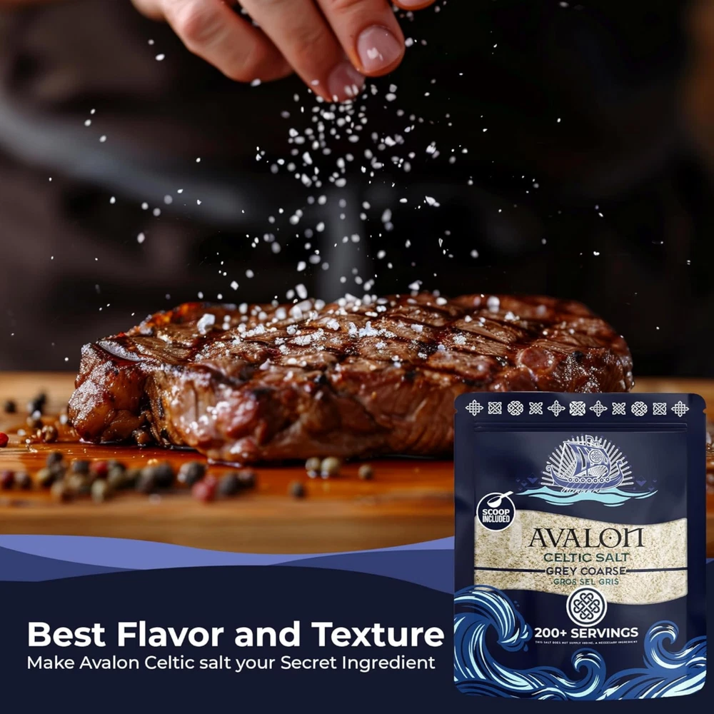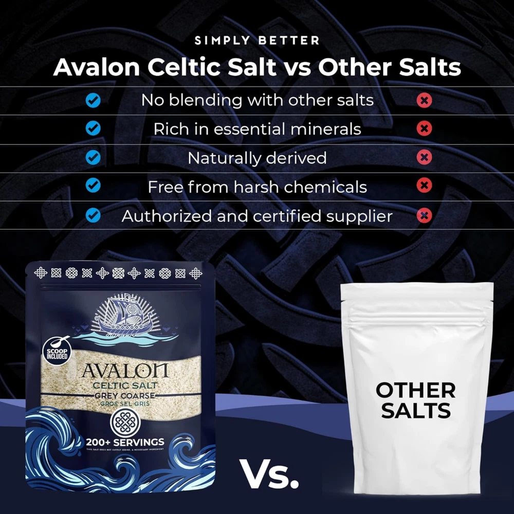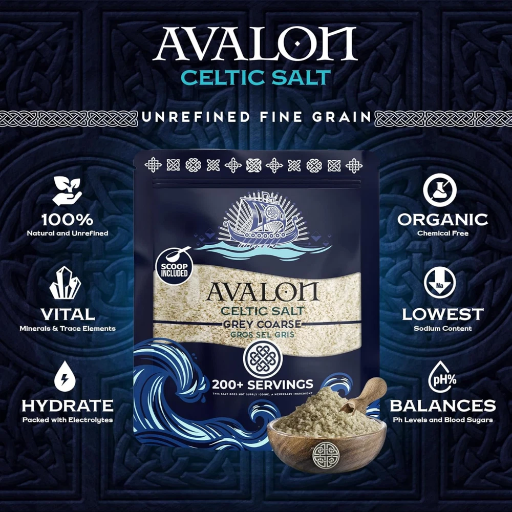 Avalon Celtic Salt, 8.0 OZ Coarse Celtic Sea Salt Organic, Unrefined French Celtic Salt Organic 82 Minerals Coarse, 100% Natural Gros Sel Gris, Sal Celtica Organica, Celtics Salt