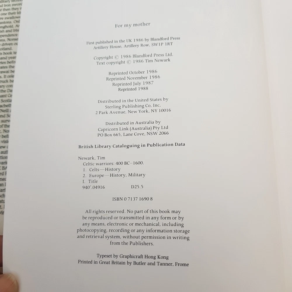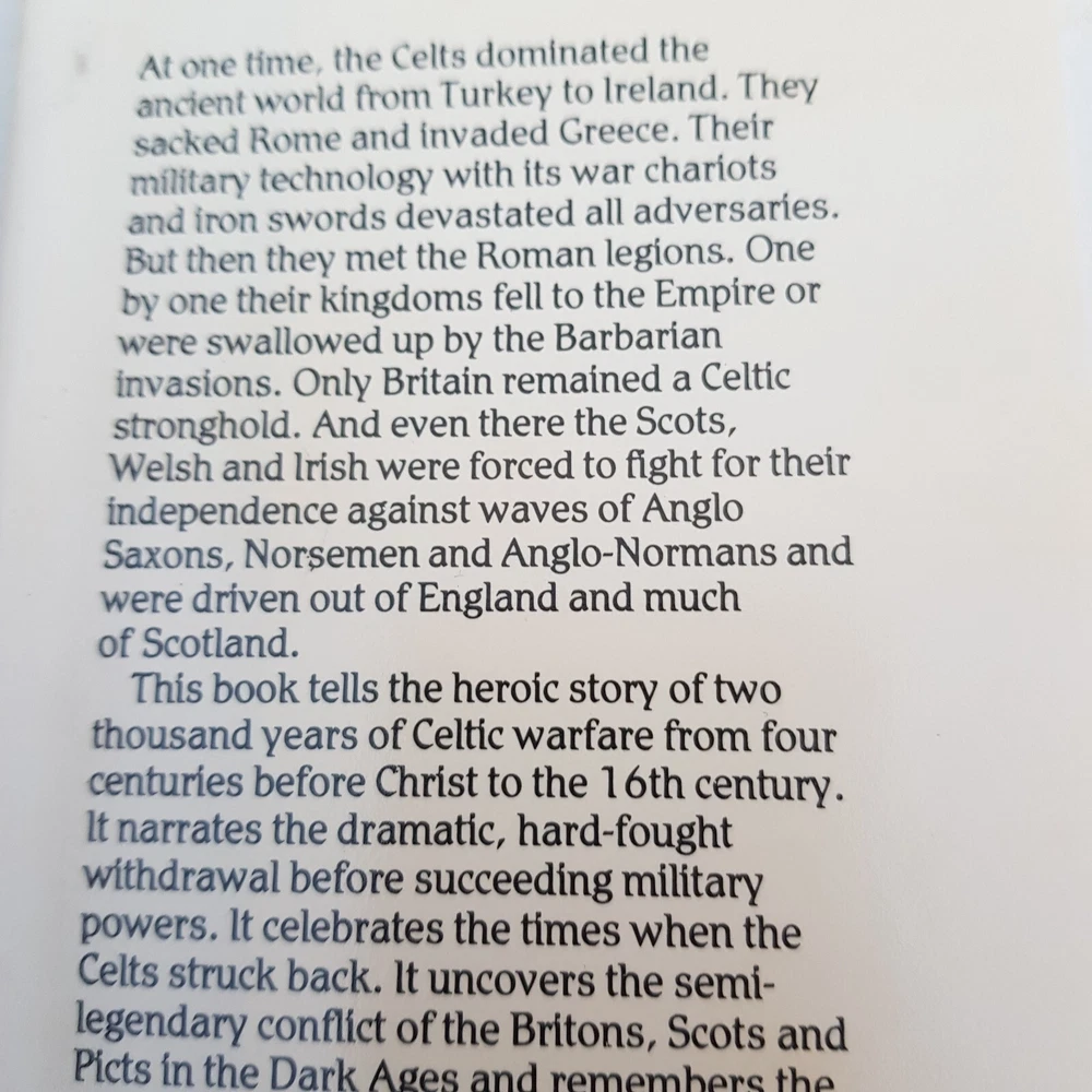 Discover the fierce and heroic stories of the Celtic Warriors through the pages of Tim Newark's novel "Celtic Warriors". This fifth edition hardcover book published by Blandford Press in 1988 is a must-read for young adults and adults alike who are interested in historical war and combat genres. With 400 BC - AD 1600 as the timeline, this fiction narrative is filled with captivating illustrations by Angus McBride that will transport readers to a world of ancient battles and heroic tales. This ex-library book with dust jacket and colour illustrations is a treasure to add to any bookshelf.
