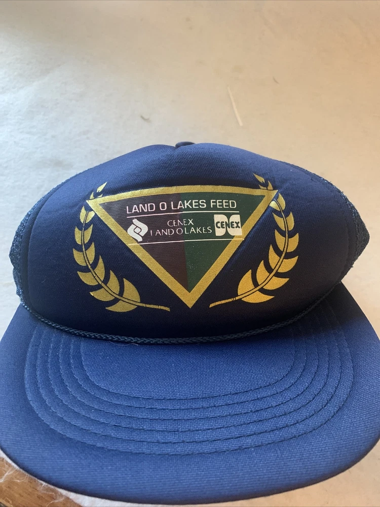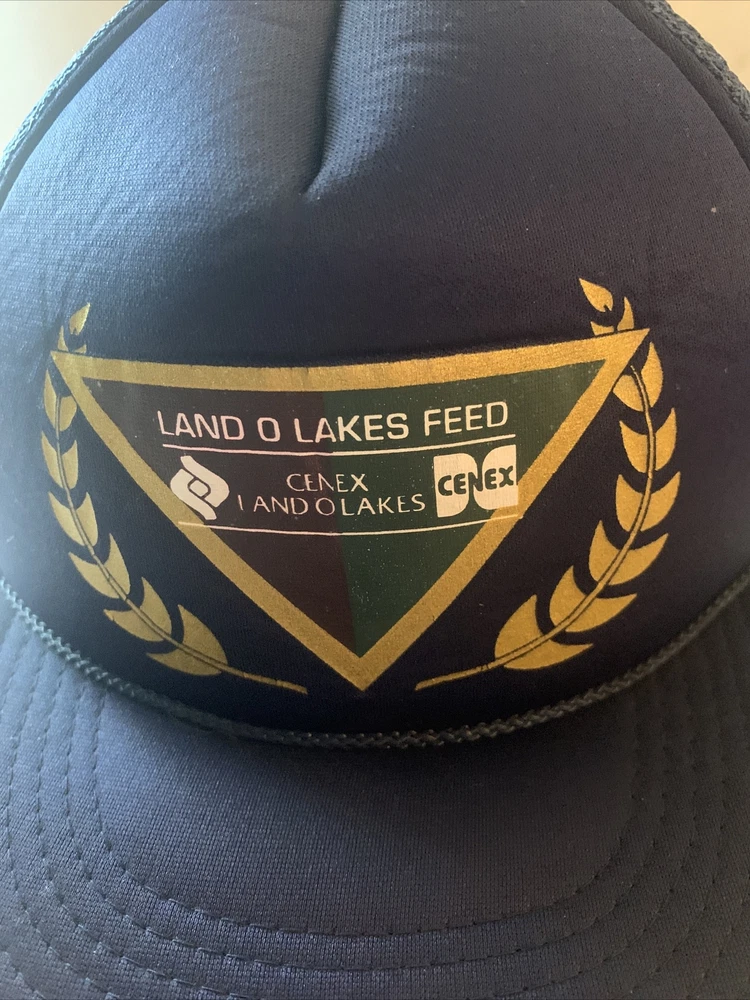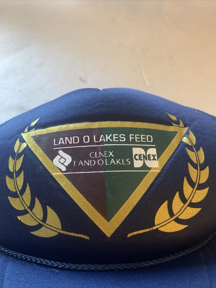 Cenex Land O Lakes Feed vintage trucker hat SnapBack Mesh Navy Blue Gold.