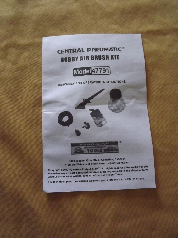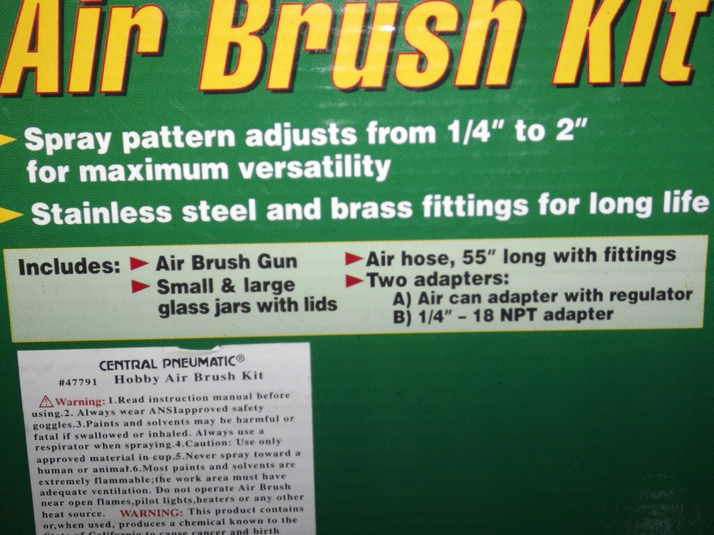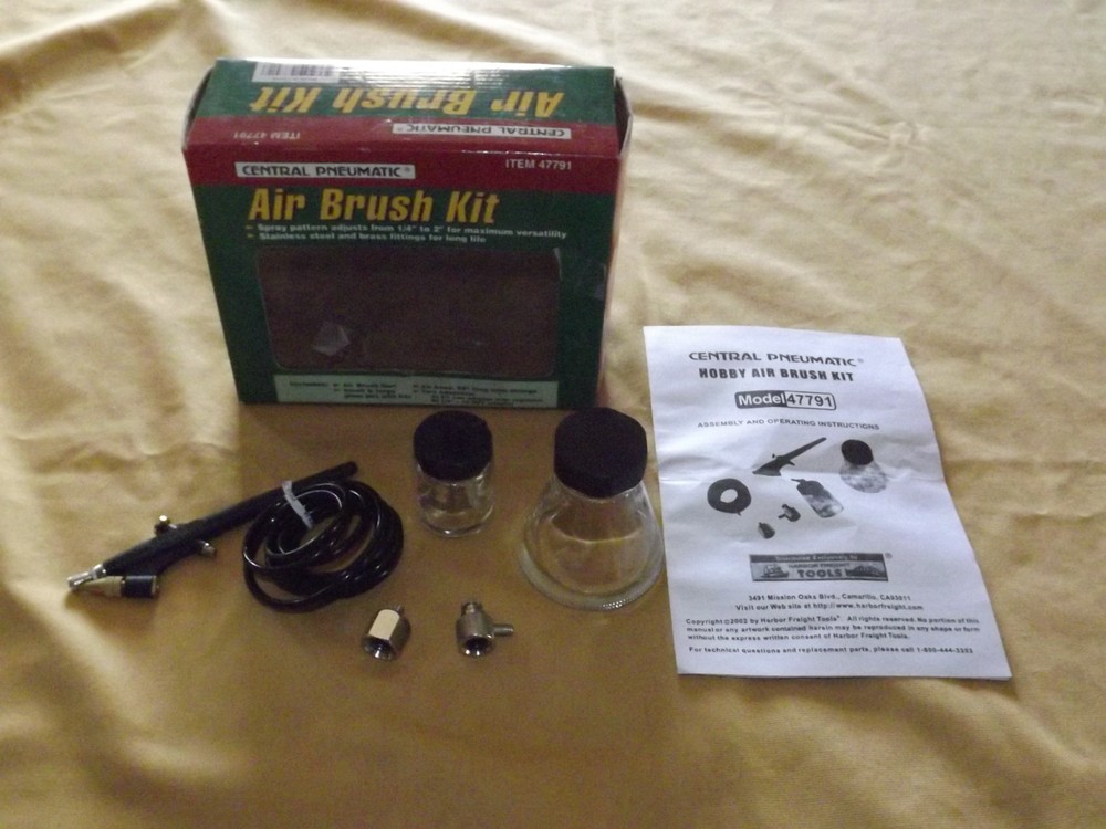YOU ARE BIDDING ON..... CENTRAL PNEUMATIC AIR BRUSH KIT NEW IN BOX ....... ........PLEASE VIEW PHOTOS FOR CONDITION.***PLEASE E-MAIL IF YOU HAVE A QUESTION OR WANT AN ADDITIONAL PICTURE....PLEASE VISIT MY EBAY STORE FOR ADDITIONAL VINTAGE ITEMS..THANK YOU*** 30-2fl-1612