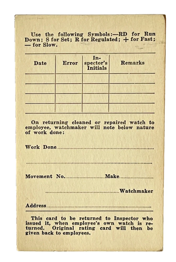 Central Vermont Railway Employee's Watch Repair Inspection Card It measures approximately 2 1/2" x 4" In unused condition. New Old Stock. The card is blank. Please see photos. FAQs All items are examined and every attempt is made to describe them completely and accurately. However, most items are antique/vintage, and by virtue of their age will not be perfect. They are previously owned and may show very fine handling marks and shelf wear and will not be perfect. Upon receipt if you have any concerns please contact me! If for any reason you are inclined to rate your experience less than five stars contact me first - lets discuss. Customer support is important to me as is your satisfaction! Combined Shipping? Yes, we do, and you will save $$ when you buy more than 1 item from us. Will my item be insured in transit? Yes, automatically by Ship Saver, the Post Office or Self Insurance. How will it be packed? Professionally! In bubble wrap with plenty of clean, recycled products and packaging tape for security. How can I pay? PayPal or other- Contact us if you need other payment method. Sorry, but after 7 days' of non-payment, eBay gets involved. Any issue, please talk to us! THANK YOU for shopping with P-B-Antiques