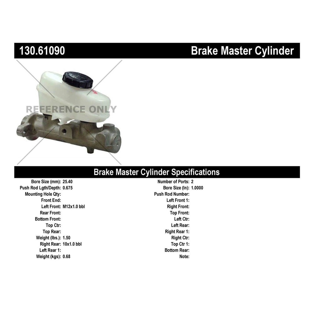 Centric Parts 130.61090 Brake Master Cylinder For 96 Ford Mercury Sable Taurus Centric Parts 130.61090 Match O.E. Parts In Quality; Configuration And Fitment. Complete With Reservoirs; Switches And Floats. Original Aluminum Casting Body Design Where Applicable. Manufactured Under The Highest Quality Standards By Oem And Oes Manufacturers Brake Master Cylinder FEATURES: Match O.E. parts in quality; configuration and fitment. Complete with reservoirs; switches and floats. Original aluminum casting body design where applicable. Manufactured under the highest quality standards by OEM and OES manufacturers SPECIFICATIONS: Bleeder Hoses Included: No Bore Size: 25.400 MM Bore Type: Straight Brake Booster Included: No Master Cylinder Bore Diameter: 1.000 IN Master Cylinder Cap Included: Yes Master Cylinder Material: Aluminum Mounting Bracket Included: No Mounting Hardware Included: No Mounting Hole Quantity: 2 Port Quantity: 2 Primary Bore Diameter: 25.400 MM Primary Outlet Flare Type: Bubble Primary Outlet Thread Diameter: 10.000 MM Primary Outlet Thread Pitch: 1.00 MM Primary Outlet Thread Size: M10-1.00 Push Rod Included: No Reservoir Included: Yes Reservoir Material: Plastic Reservoir Style: Removable Reservoir Type: Single Secondary Outlet Flare Type: Bubble Secondary Outlet Thread Diameter: 12.000 MM Secondary Outlet Thread Pitch: 1.00 MM Secondary Outlet Thread Size: M12-1.00 The Centric Parts brake hydraulic program is the most complete and up-to-date in the industry and includes Brake Master and Wheel Cylinders; Brake Hoses; Caliper And Wheel Cylinder Repair Kits And Remanufactured Power Boosters. Centric Parts Brake Master Cylinders match original equipment parts in quality; configuration and fitment. Cylinders are complete with reservoirs; switches; and floats and are offered with the original aluminum casting body design where applicable. Fits what vehicles: 1996 Ford Taurus, 1996 Mercury Sable We carry performance and replacement parts, along with every consumer item you’ll ever need. Take advantage of our huge distribution network in the United States and Canada, we're able to ship direct to you, so we can get your order into your hands faster than the competition. Our goal is to exceed your expectations. And we’ve built a system to do just that. Our company combines hard-core drag racers and auto enthusiasts with tech-savvy engineers and developers — all car lovers — to create a webstore that gives you an unmatched shopping experience — and we deliver it fast. Very fast. Unlike traditional brick-and-mortar retail outlets, our inventory isn’t limited to what we can pack into a storefront or what a counter clerk may be able to find. While they can only offer you hundreds of items, you’re just a few clicks away from millions of parts when you shop PartsHawk — all in stock and ready to ship. And since we don’t own any of those expensive stores, we can offer our parts for less, and that saves you money on every part, every day. A better shopping experience, for every product for every car, whenever you order. SHIPPING POLICY 99% of orders placed by 2pm Eastern Standard time will be shipped same day All orders are immediately sent to our distribution centers which may impact your ability to cancel the order once it's placed Many parts are stocked in more than one warehouse location. As a result your order may ship from a location other than the location shown in the listing. In most cases the shipping location will be closer to delivery address as we always try to ship from the closest warehouse to minimize transit times. In some circumstances intraday sales and other inventory changes may result in your item being shipped from a location further from your delivery address. Orders over $200.00 may be shipped signature required at no additional cost to you. We recommend shipping to a location where someone will be there to receive the package RETURN POLICY PartsHawk stands behind every item we sell. Occasionally, there may be an issue with your item or your order and we will do our best to ensure you are 100% satisfied. We offer a 30 day exchange or refund policy on all orders. Within 30 days or receipt of your order you may request a return for either an exchange or a refund. All product returns must be in the original packaging, have not been used, installed or damaged due to improper installation. All parts, hardware, documents and instructions must be included in the returns. PartsHawk will also support the manufacture’s warranty for all item during the warranty period offered by the manufacturer. Carriers and Ship Methods : We ship most packages to the contiguous 48 states using USPS, UPS or FedEx. Upon shipping we determine the closest distribution center to you and the quickest method. Note : We do not accept returns for Car Computers, Performance tuners or Vehicle Programmers. If the product is defective we will exchange the unit for the exact item. No new returns on these products. Large Parcel Items : For large items (bumpers, side steps, bed covers, etc.), these may be shipped through a truck delivery service. If you are having issues tracking your package please contact us so we can assist you. Return Check List Original packaging PartsHawk RMA (return merchandise authorization) form All accessories & hardware Any documents and instructions GLOBAL SHIPPING PROGRAM How does shipping work? Placing an order outside the US is easy! In fact, eBay handles the entire transaction for you once we have shipped the product to their warehouse in Kentucky. Once the order has shipped you will receive a tracking number from our warehouse to Kentucky and then another tracking number from Kentucky to you. Additional Charges and Fees Additional shipping, duties and taxes will be calculated by eBay during check out. Outside the US? Don't worry, PartsHawk is currently shipping to over 100 countries Check the Shipping and Payments section above to see if this item can be shipp