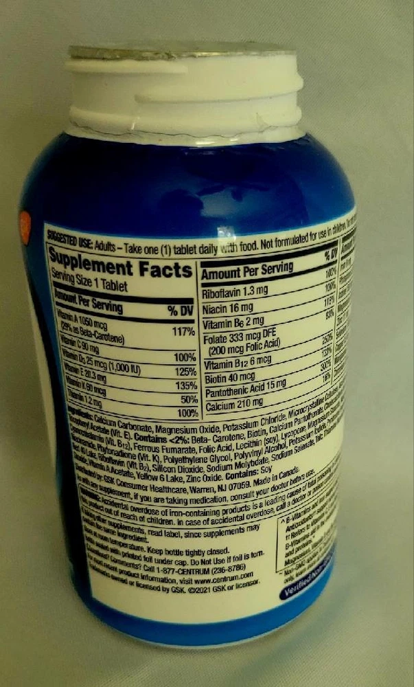 Centrum Men Multivitamins 200 tablets NEW bottle without cap Exp 04/25 Centrum Men Multivitamins 200 tablets NEW bottle without cap Exp 04/25 Description PEDDLER'S WAGON Come an d Check us out! We like to sell great products at affordable prices! Pay with Master card or Visa with Pay Pal! Check out my other items ! Be sure to add me to your favorite's list ! You are viewing / bidding on One bottle Centrum Men from bottle: "supports energy, immunity, metabolism + muscle function" 200 tablets Multivitamin The pictures show the item for sale. The bottle is sealed. There is NO cap Expiration date 04/25 Please look at the pictures for more details. Click images to enlarge Payment We accept payments with Pay Pal. Payment is expected within 10 days after the close of the sale/auction. We hold the right to re-list an item, if payment is not received in time. Be advised of Ebay's Non-Paying Bidding policy. Shipping SAVE ON SHIPPING COSTS!! Shipping within US only. We can combine shipping charges with our other auction items. All our items will be packaged well, usually in a bubble wrap envelope. Terms of Sale We are trying to give you all the information you need to make an informed decision, so that you make a purchase in our store. Please ask us before you bid if you are uncertain about something, so that we can try to make it better for you! And... if case there is an issue with the item that you received please do NOT just leave neutral or negative feedback, but contact us first so we can show you our excellent customer service and make it better for you! Thank you for coming to our store! Please email us with any questions or problems. Thank you for your interest in our items. Have a great day! Images sell! Get Supersized Images & Free Image Hosting Create your brand with Auctiva's Customizable Templates. Attention Sellers - Get Templates Image Hosting, Scheduling at Auctiva.com. Track Page Views With Auctiva's Counter