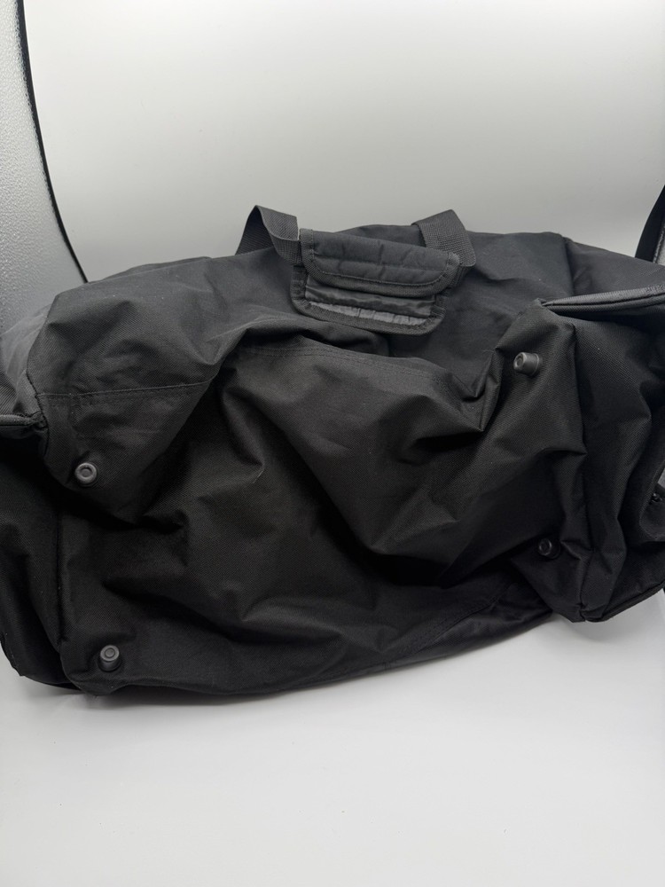 Century Football large duffle bag in good pre-owned condition. Perfect for football gear, gym, sports equipment, or travel. Details: • Brand: Century Football • Color: Black with teal logo • Large main compartment with wide zipper opening • Side compartments for shoes or gear • Strong carry handles and adjustable shoulder strap • Durable polyester material • Lightweight and practical Condition notes: Bag shows normal signs of use such as light wrinkles and minor wear. No rips, no holes, and zippers work properly. Please review all photos carefully for exact condition.
