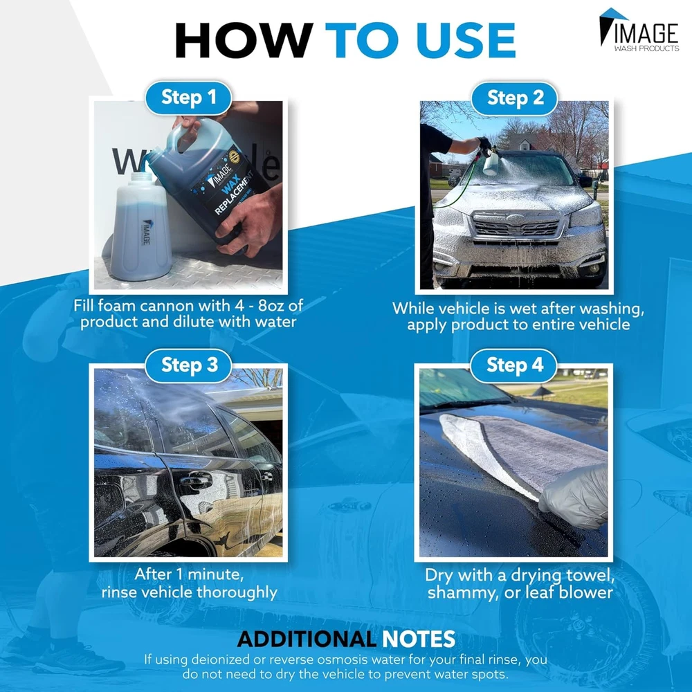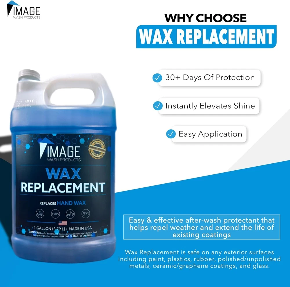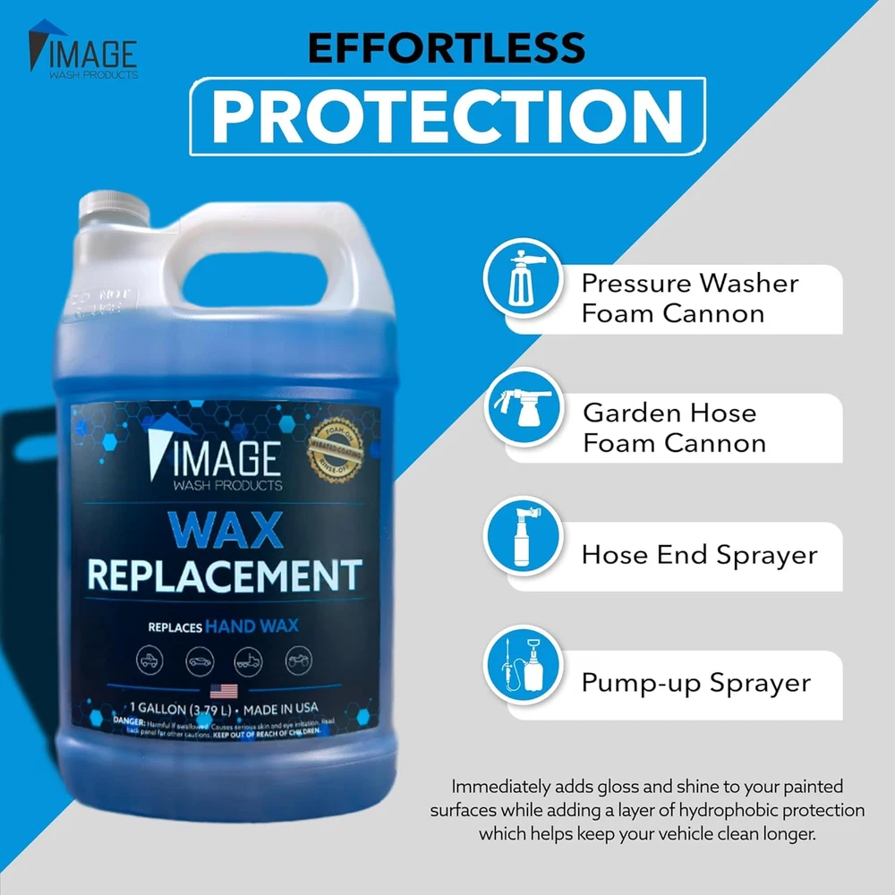 Store New Arrivals Add to Favorite View Feedback Contact Wax (Foamable) - Protectant for Any Size Vehicle. Foam On/Rinse off (128Oz) Description Item model number RWP1345V Product Dimensions 0.57 x 6 x 11.5 inches; 8 Pounds Country of Origin USA Item Weight 128 Ounces Recommended Uses For Product For Paint Protection, Repels rain and ice Item Form Liquid Specific Uses For Product Removes Dirt Size 128 Fl Oz (Pack of 1) COMPLETE VEHICLE CARE PACKAGE: Elevate your vehicle maintenance with a powerful combination of our Foamable Wax and Customizable Foam Cannon. Achieve a dazzling glossy finish effortlessly while enjoying an adjustable fan pattern for maximum efficiency. ULTIMATE SURFACE PROTECTION: Image Wash Products' Wax (Foamable) offers long-lasting protection for over 30 days, safeguarding your vehicle against contaminants, salt, dirt, and UV rays. EFFICIENT LARGE EQUIPMENT WAXING: Experience the most effective way to wax big rigs, farm equipment, RVs, and other large vehicles with speed and efficiency, achieving a glossy finish that lasts. FOAMY DELIGHT FOR PRISTINE CARS: Enjoy a foamy delight with Image Wash Products' Foam Cannon, a universal-fit tool for a scratch-free, professional car wash that effortlessly connects to any pressure washer (1000PSI+) via a quick disconnect. SWIRL-FREE FINISH: Say goodbye to scratches and swirls with the Foam Cannon, a detailer's choice that transforms your car wash into a luxurious foam bubble bath, gently removing abrasive dirt particles without harming the paint. CUSTOMIZABLE CLEANING EXPERIENCE: Elevate your car care lifestyle with the Foam Cannon's customizable foam power. Seamlessly blending soapy water with air and running water, adjust the foam concentration for a tailored cleaning experience. Product Description Recommended Product Pairing & Usage Add to Cart Add to Cart Add to Cart Add to Cart Add to Cart Customer Reviews 3.7 out of 5 stars 131 4.4 out of 5 stars 54 3.6 out of 5 stars 30 3.5 out of 5 stars 9 4.6 out of 5 stars 463 Price $109.99 $ 109 . 99 $13.99 $ 13 . 99 $10.99 $ 10 . 99 $17.67 $ 17 . 67 $27.99 $ 27 . 99 Product Touchless 1 & 2 Soap Bug Remover Car Wash Soap Sheets Platinum Wash Soap Wax When to use it? In between your regular washes Before you wash After your PREP process After your PREP process After PREP & WASH process Does it require brushing? ✘ ✔ ✔ ✔ ✘ Safe on polished aluminum ✔ ✔ ✔ ✔ ✔ Chemical pH Step 1: 1-2 | Step 2: 12-13 10.5 - 11.5 7 - 9 7 - 9 4 - 6 ABOUT US We offer the best prices around on high quality products. Our E-store includes media such as books, movies, music and games while offering electronics, toys, sporting apparel, clothing, tools, general home, garden items and more. SHIPPING We are always working hard to ensure your package arrives as soon as possible. Please understand that some factors like weather, high postal traffic, and the performance of shipping companies are outside of our control. We offer free shipping to the lower 48 states and ship within 2 business days of payment, usually sooner. We do not accept P.O. Boxes. Please provide a physical address. For shipping outside of the continental USA, we only use eBay's Global Shipping Program.The item is shipped to KY and then sent to the rest of the world. International customers are responsible for all duties and taxes. Continue to check out in order to calculate costs for shipping the item to your country. Messages regarding eBay's Global Shipping Program MUST be directed at eBay EXCLUSIVELY. RETURNS We offer a 30-Day Return Policy on items which you are not completely satisfied with. You have the option for a full-refund or an exchange of the item. No returns are available on items shipped outside of the USA. PAYMENT We accept PayPal. CONTACT US This page content is yet to come Please ad us to your favorite seller and visit again later Thank You CUSTOMER SATISFACTION We try our very best to make sure every customer is completely satisfied. If there's a problem, message us! We're happy to help. WE ACCEPT Copyright © 2021 AutoDS. | All Rights Reserved