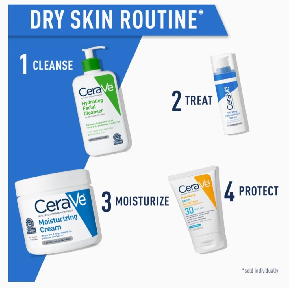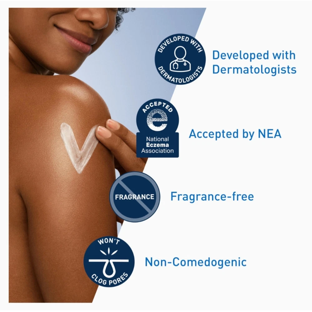 CeraVe Moisturizing Cream Body and Face Moisturizer for Dry Skin 19 ounce FS. Brand Name: CeraVe Product: Moisturizing Cream Type: Cream Size: 19 oz Please see pictures for further Information. Feel free to ask for additional details if needed. Specifications: Brand CeraVe Item Volume 19 Fluid Ounces Item dimensions L x W x H 3.58 x 3.58 x 8 inches Age Range (Description) Teen Special Feature Non Comedogenic Description: · [ HYALURONIC ACID MOISTURIZER ] With hyaluronic acid, ceramides and MVE technology for 24 hour hydration. Rich, velvety texture that leaves skin feeling smooth, it is absorbed quickly for softened skin without greasy, sticky, feel. · [ MOISTURIZER FOR DRY SKIN ] A deficiency of ceramides in skin can often be associated with dry skin, which can feel itchy and look flaky. CeraVe Moisturizing Cream is formulated with three essential ceramides & hyaluronic acid. · [ GENTLE DAILY MOISTURIZER ] For face and body or can be used as a hand cream for dry skin relief. Holds National Eczema Association (NEA) Seal of Acceptance. Fragrance free, paraben free, allergy-tested, and non-comedogenic. · [ 3 ESSENTIAL CERAMIDES ] Ceramides are found naturally in the skin and make up 50% of the lipids in the skin barrier. All CeraVe products are formulated with three essential ceramides (1, 3, 6-II) to help maintain the skin’s natural barrier. · [ DEVELOPED WITH DERMATOLOGISTS ] CeraVe Skincare is developed with dermatologists and has products suitable for dry skin, sensitive skin, oily skin, acne-prone, and more. Free and Fast Shipping: We use Premium Shipping Services to ship products. All orders are processed and shipped within 2-3 business days. Our aim is to deliver your package as quickly as possible in 2- 5 business days. If the item is lost or there is an uncertain delay in the delivery by shipping carrier we request you to contact us, so we can help you out with a refund or replacement. Return Policy: We are committed to make sure that you leave this transaction satisified. If you are unhappy with the product for any reason you may return it back in original packing and customer will pay for return shipping. No questions asked! Customer Feedback: All Store policies are for the customer satisfaction & customer gratification. It's our first and foremost priority. We always strive hard to create a very best and positive customer experience. Please leave a positive feedback about your recent purchase. We appreciate it very much. Thank you, HH Commerce LLC.