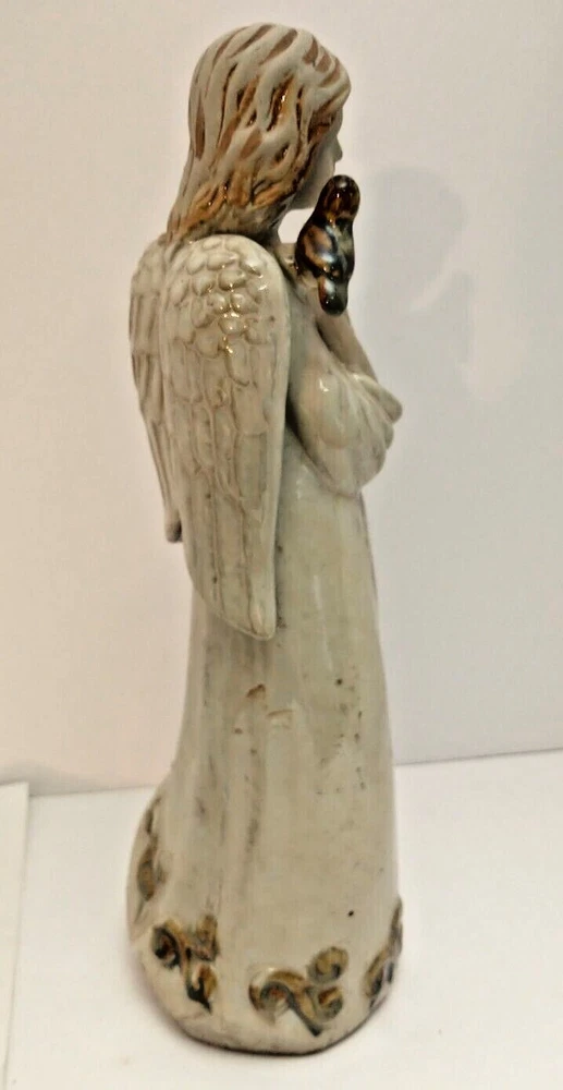Subject:Birdgtin13:Does not applyTime Period Manufactured:UNKNOWNType:FigurineShape:ANGELUPC:Does not applyColor:Beige TonesItem Height:12.5"Number in Pack:1Additional Parts Required:NoEngraved:NoOccasion:AnyHandmade:NoDepartment:AdultCollection:SeasonsCustomized:NoCharacter:NONEPattern:ANGELRoom:Any RoomItem Length:12.5"Finish:CERAMICBrand:EléganceArtist:UNKNOWNTheme:AngelMaterial:Ceramic & PorcelainCustom Bundle:NoCountry/Region of Manufacture:ChinaStyle:AmericanProduction Technique:NONESeller Notes:“Excellent Pre Owned Condition”Signed:NoClosure Type:NAOriginal/Reproduction:OriginalEra:UnknownSize:12.5"Character Family:Angel