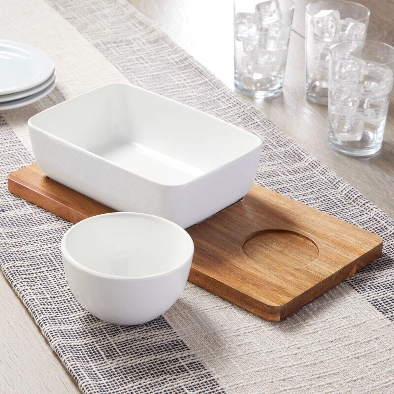 Bagless Upright Vacuum Cleaners Corded Electric Tile Carpet Hardwood Cleaning 74.55 USD 78.47 USD Free shipping 5% off 3-in-1 Corded Upright/Handheld Floor Carpet Vacuum Cleaner Cleaning Household 26.84 USD 28.25 USD Free shipping 5% off 3-Compartment Stainless Steel Kitchen Trash and Recycling Bin 16 gal Trash Cans 78.8 USD 82.95 USD Free shipping 5% off 74" Tall 5 Tier Plastic Garage Shelves Storage Shelving 750 Lbs Capacity Racks 63.04 USD 66.36 USD Free shipping 5% off 10 Gallon Glass Aquarium Starter Kit LED Lighting Filtration System Fish Tank US 56.83 USD 59.82 USD Free shipping 5% off 24 Gallon ActionPacker Storage Bin Heavy Duty Lockable Tool Box Containers Lid 46.79 USD 49.25 USD Free shipping 5% off Rain Train 13,500 Square Feet Cast Iron Traveling Sprinkler Auto Shut-off Ramp 95.55 USD 100.58 USD Free shipping 5% off Collapsible Rolling Miter Saw Stand W/ 3 Outlets & Quick-Release Brackets New 148.93 USD 156.77 USD Free shipping 5% off 5-Amp 8-Inch Variable Speed Bench Grinder with Flexible Work Light Benchtop New 176.26 USD 185.54 USD Free shipping 5% off Power Force Compact Bagless Vacuum Upright Vacuums Cleaning Floor Care Cleaners 46.88 USD 49.35 USD Free shipping 5% off 15 Amp Electric Corded Chainsaw Self-Sharpening Tool-less Tensioning Low Noise 130.0 USD 136.84 USD Free shipping 5% off 1.1 Cu ft Upright Freezer Adjustable Temperature Control Energy Efficient New 146.57 USD 154.28 USD Free shipping 5% off Our Ceramic Chip Dip Bowl with Acacia Tray is combined with ceramic & acacia wood. Extra sturdy chip and dip serving set are crafted with ultra-fine bright white ceramic and natural acacia wooden tray, finish sheen glazed interior with heavy and firmed rounded edges of these dipping bowls that easy to reach down for the last bits of the sauce. The surface of the ceramic bowl is smooth and clean, and it can be simply cleaned after use. The two bowls, one large and one small for chip and dip function. They are the perfect size for dips, cheese, sides, snacks, etc. , well made, and perfect for weeknight parties! Item consists of 1pc wooden tray & 1pc ceramic chip bowl & 1pc ceramic dip bowl Dimension of Chip Bowl: 7. 87L x 5. 31W x 2. 56H Inch Dimension of Dip Bowl: 4. 33 Dia x 2. 48H Inch Assembled Item Dimension: 13. 46L x 6. 46W x 2. 99H Inch Dimension of Wooden Tray: 13. 46L x 6. 46W x 0. 59H Inch Each appetizer serving tray will be slightly unique due to the nature of the acacia wood material Stoneware: White; Acacia wood: Nature Practicality. The solid wood serving platter, a beautiful counterpoint to the sleek glazing ceramic, nestles the small bowls, protects tables and counter tops from the hot dishes and makes for easy passing The use of glue dots is to prevent ceramic movement. It can be torn off in a whole piece. Consumers also can try using a hair dryer on hot air, the glue dots will tear off easily at high temperature. Honey Killer Bee Dry BBQ Rub and Seasonings Grill Seasoning 13.2 Oz 15.33 USD 16.14 USD Free shipping 5% off Drain Clog Remover Unscented Rapid Dissolution Kitchen Sinks Bathtubs 80 Fl Oz 7.72 USD 8.13 USD Free shipping 5% off Interior Paint Eggshell 1 Gallon Washable Kitchen Antique White / Off White New 25.18 USD 26.51 USD Free shipping 5% off Easy Step Arched Walk Thru Baby Gate Pets Stairway 4-Inch Extension Kit Durable 46.92 USD 49.39 USD Free shipping 5% off Dish Drying Mat Machine Washable Breathable Mesh Washing Pots Pans Dishes New 7.86 USD 8.27 USD Free shipping 5% off Round Dinner Bowl Versatile Sturdybowls Cereal Soups Salads Snacks White 28-oz 7.75 USD 8.16 USD Free shipping 5% off 10X25 Compact Binoculars Bird Watching Hunting Outdoor Sports Concerts New 18.08 USD 19.03 USD Free shipping 5% off Polyester Tackle Bag Handbag W/ Trays Functionality Convenience Sturdy Gray New 13.95 USD 14.68 USD Free shipping 5% off Stainless Steel 16-Quart Stock Pot with Glass Lid Induction Safe Dishwasher Safe 35.16 USD 37.01 USD Free shipping 5% off 3-Piece Ceramic Storage Jar Set Textured Trinkets Cotton Balls Q-tips White New 27.93 USD 29.4 USD Free shipping 5% off 12 Inch 7 Pieces Condiment Server Set W/ Bamboo Lazy Suzan Servin Tray Durable 24.82 USD 26.13 USD Free shipping 5% off 6-inch New Desktop or Clip-on AC Electric Personal Indoor Fan w/ 2 Speeds, Black 17.94 USD 18.88 USD Free shipping 5% off