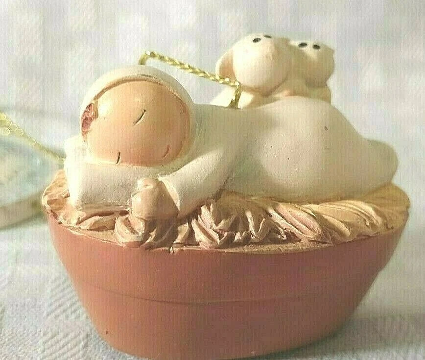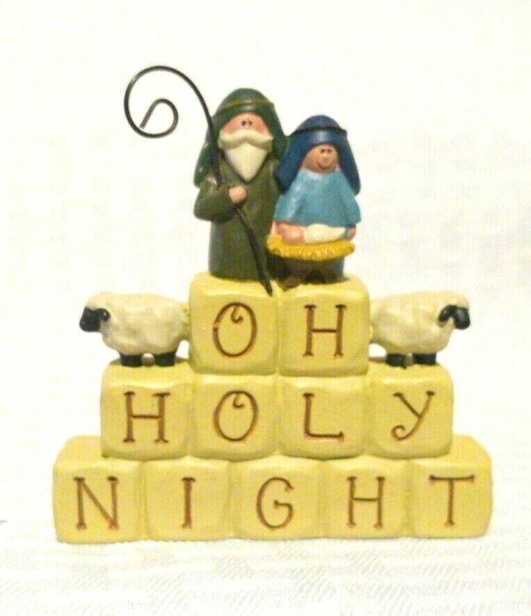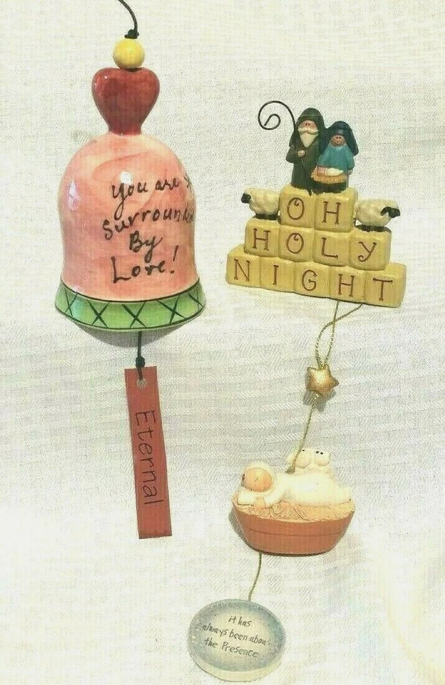Set of 3 Christian themed Christmas Ornaments Oh Holy Night - Mary, Joseph and Baby Jesus Ornament Bell - Love Manger with baby and 2 lambs - Meaning of Christmas Good Condition