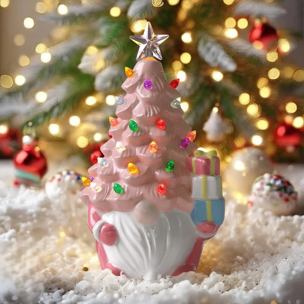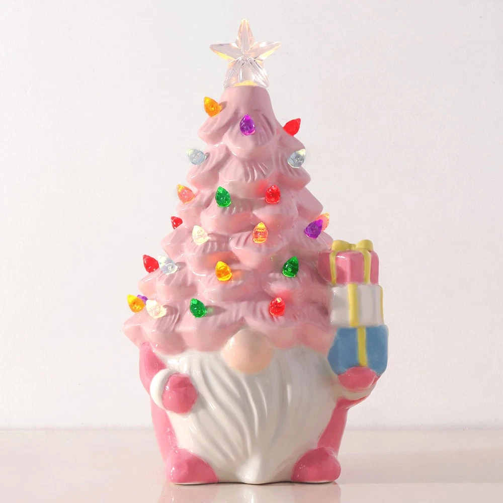 Ceramic Christmas Tree, Pink Christmas Decor Light-Up Ceramic Gnome with LED ...